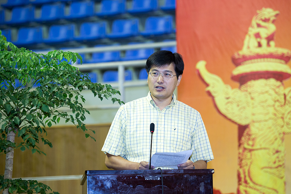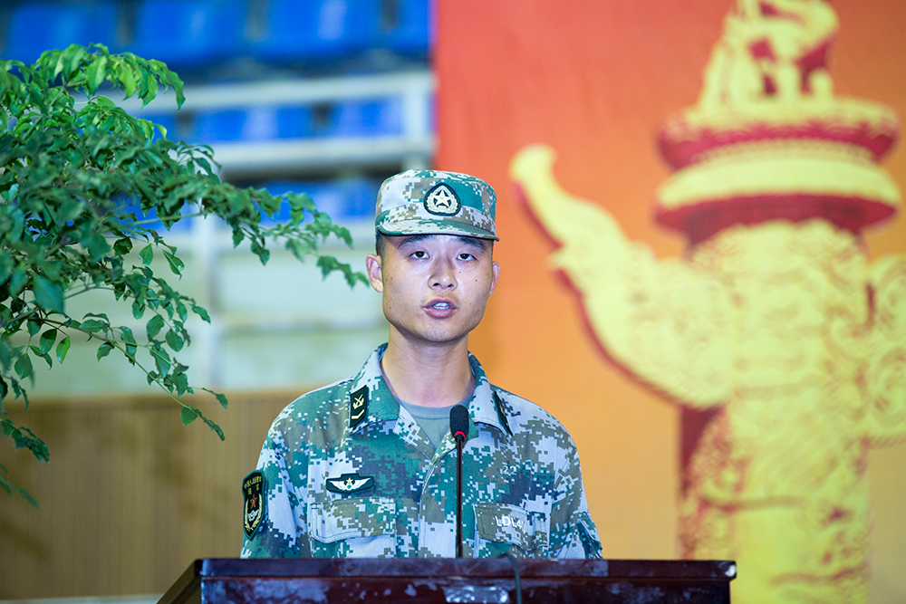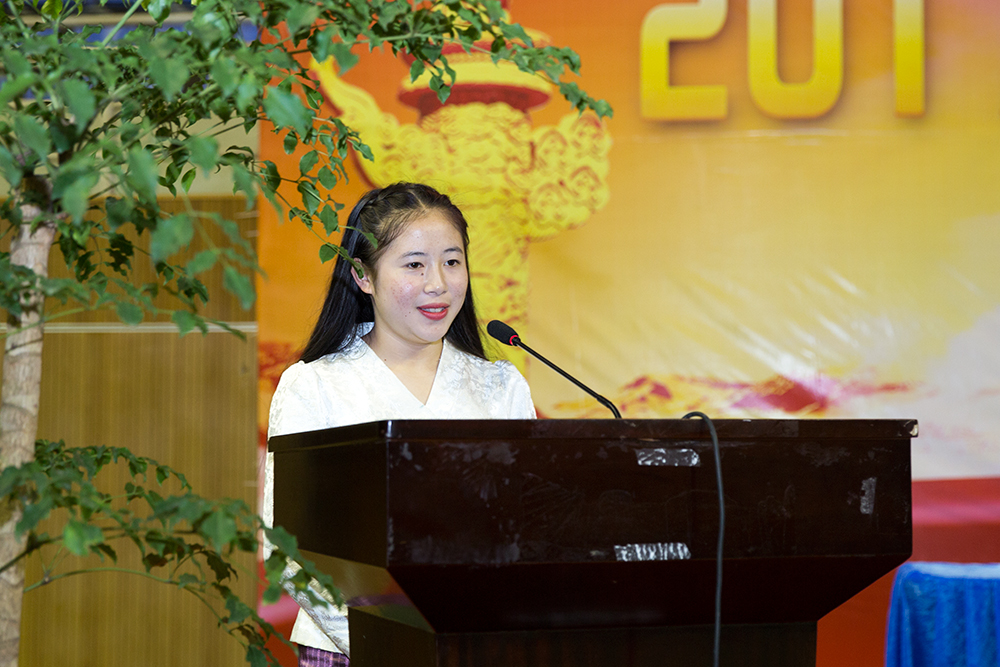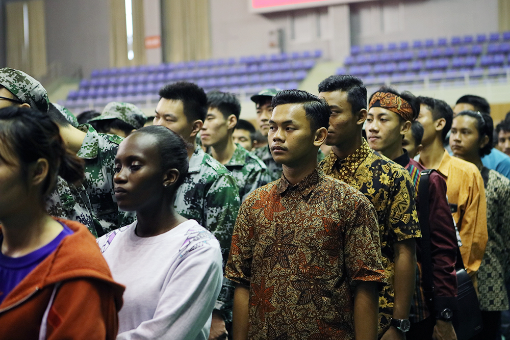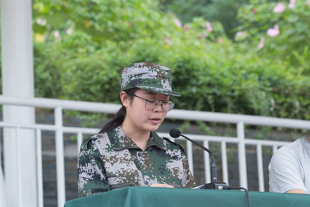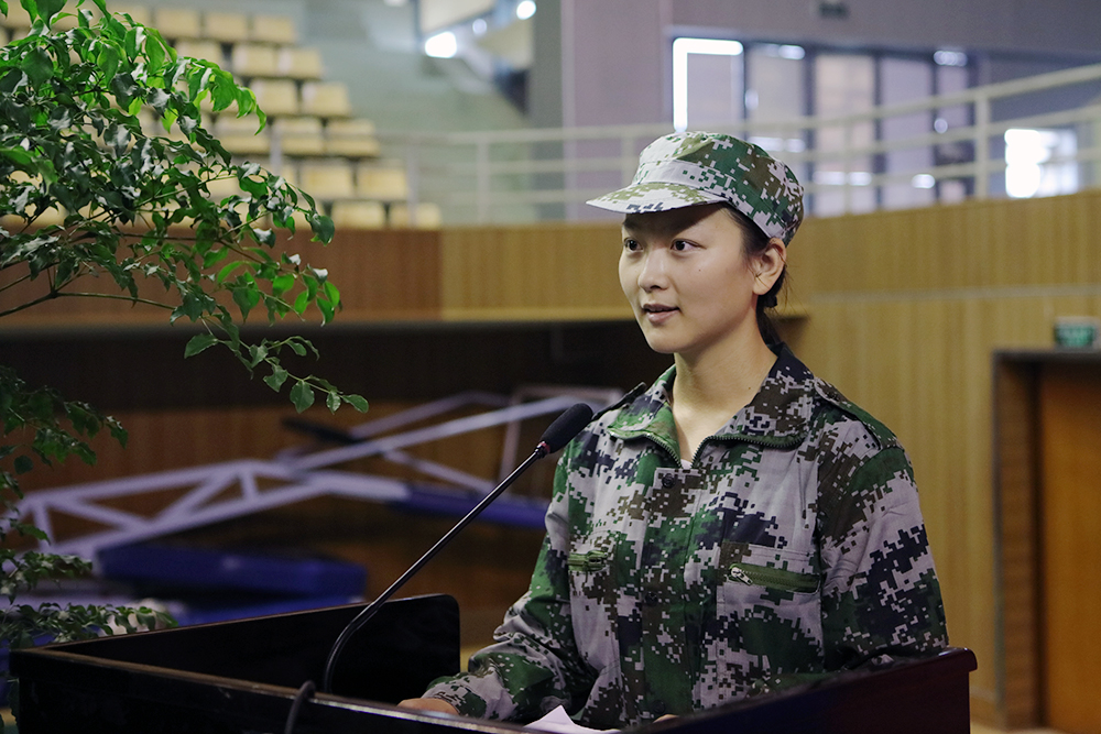 军训教官代表曹必良、钟伟胜,教师代表杨广荣老师,新生代表杨丝语、王飞霞,留学生代表SOMPHAMITH(宋帕密)分别发言。