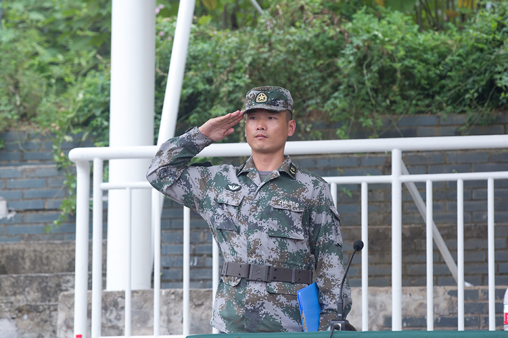 典礼最后,俞卫东书记向2017级新生军训团团长葛启亮上尉授予军训团旗,郑重宣布色花堂