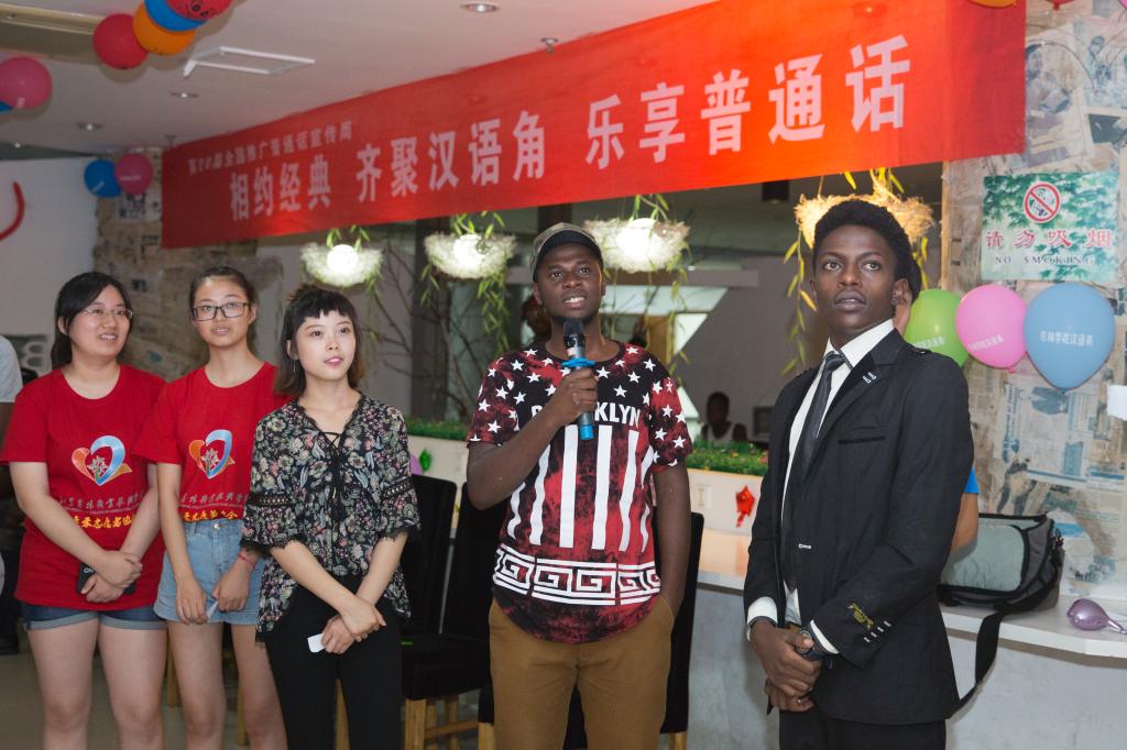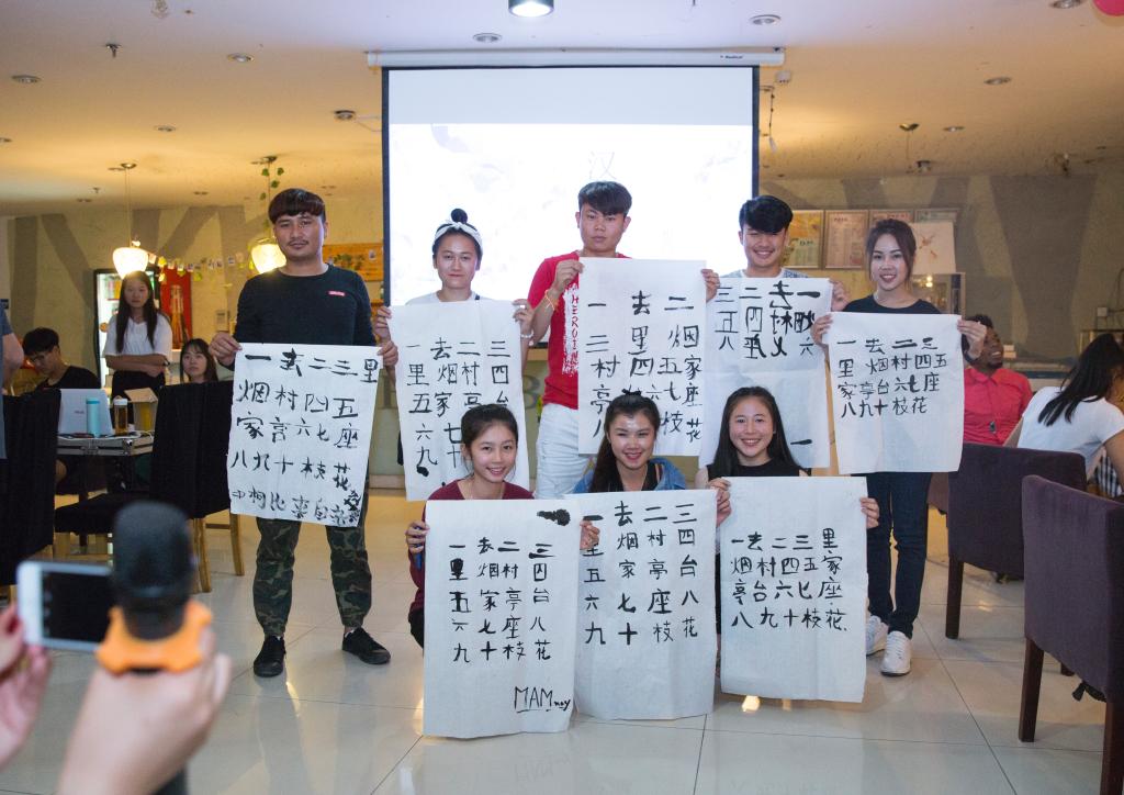 相约乐享汉语。9月15日晚,作为“推普周”活动的重要一环,以“相约经典,乐享普通话”为主题的“汉语角”特别活动如期进行,我校十五位中国学生与六十多位留学生欢聚图书馆一楼学习吧,一起诵读唐诗、写毛笔字、玩文字接龙游戏等等,使留学生真正零距离接触中国文化,深切感受中华优秀传统文化的独特魅力。