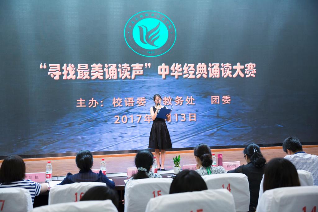 诵读传承经典。9月13下午,“寻找最美诵读声”中华经典诵读大赛决赛在图书馆一楼报告厅隆重举行。全校共9名教师、14名学生进入了决赛。选手们满怀激情地吟诵了《将进酒》《岳阳楼记》《春江花月夜》《祖国啊,我亲爱的祖国》《致橡树》等一系列中华经典作品,使在场的听众沉浸于美文之中,享受了一场难得的视听盛宴。两个小时的激烈角逐之后,教师组冠军由校团委傅浩兰老师夺得,学生组冠军为15现代农业2班王学嘉同学摘获,两位冠军得主同时荣获“色花堂