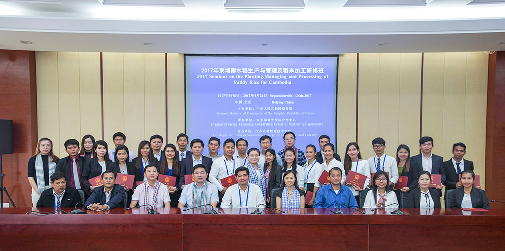 9月26日上午,柬埔寨水稻生产与管理及稻米加工研修班结业典礼在我校综合楼九楼会议室举行。农业部对外经济合作中心项目管理处处长张倩、学校副校长曹仁勇及相关部门负责同志参加了结业典礼。