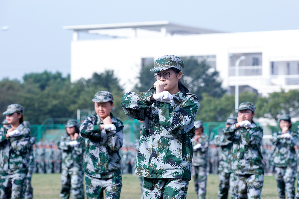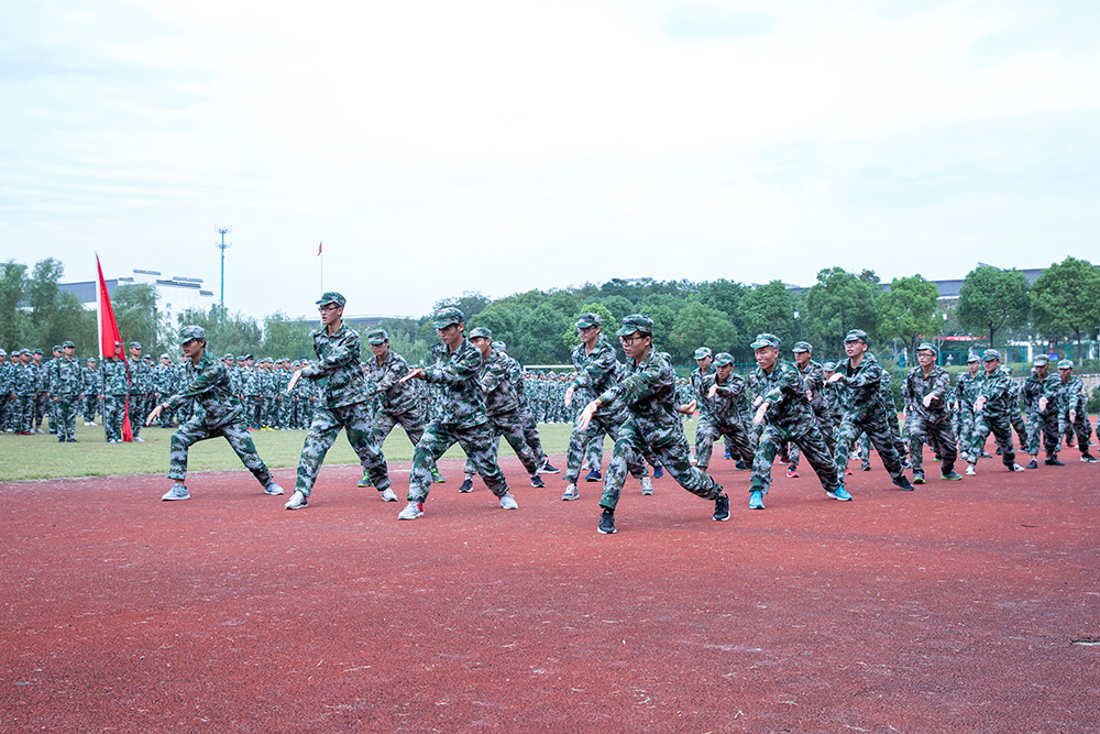 分列式结束后,同学们进行了气势恢宏的军训科目表演:男生方阵擒敌拳表演刚毅勇猛、虎虎生威;女生匕首操方阵英姿飒爽,刚中有柔;真实展现战场环境的男生战术方阵表演则干净利落,气场十足,现场精彩不断,掌声热烈。