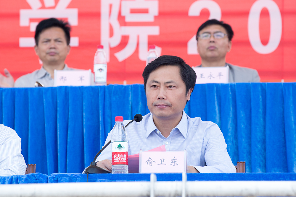 俞卫东书记代表全院师生员工向73056部队的教官们表示衷心的感谢和崇高的敬意!向圆满完成这次军训任务的全体同学致以热烈的祝贺和亲切的问候!他说军训是大学生活的第一课,今后的求学之路还很漫长,也很艰辛。希望同学们把军训带给大家的宝贵财富、军训中培养的优良作风承接到接下来的工作、学习、生活中。以必胜的信心、乐观的心态和顽强的意志面对暂时的失败和人生的低谷;以敢于向一切艰难险阻“亮剑”的精神,攻克一道道难题;以协作进取的团队精神,自觉维护集体的和谐和荣誉。