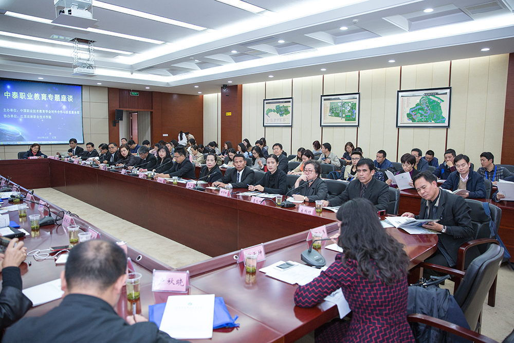 10月19日,中泰职业教育专题座谈会在学校综合楼九楼会议室举行。教育部中外人文交流中心副主任杨晓春、中国职业技术教育学会副会长金辉、中国职业技术教育学会对外合作与信息服务部主任许世杰,学校党委书记俞卫东、副校长曹仁勇,泰国教育部职业教育委员会官员、泰国“一带一路”基金会高级官员、泰国职业院校校长以及长春医学高等专科学校、金华职业技术色花堂