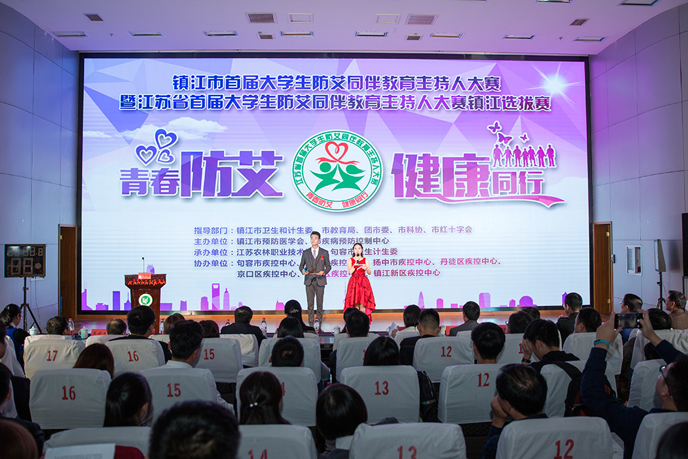 10月27日,镇江市首届大学生防艾同伴教育主持人大赛暨江苏省首届大学生防艾同伴教育主持人大赛镇江选拔赛在我院隆重举行。本次大赛由镇江市预防医学会、市疾病预防控制中心主办,我院与句容市卫生计生委承办。江苏省卫生和计划生育委员会疾控处副处长单玲英、江苏省预防医学会秘书长蒋辽远以及镇江市卫生和计生委、教育局、团市委、科协、红十字会等相关领导出席本次大赛并担任评委,共有镇江市辖区内的7所院校11支团队参赛。