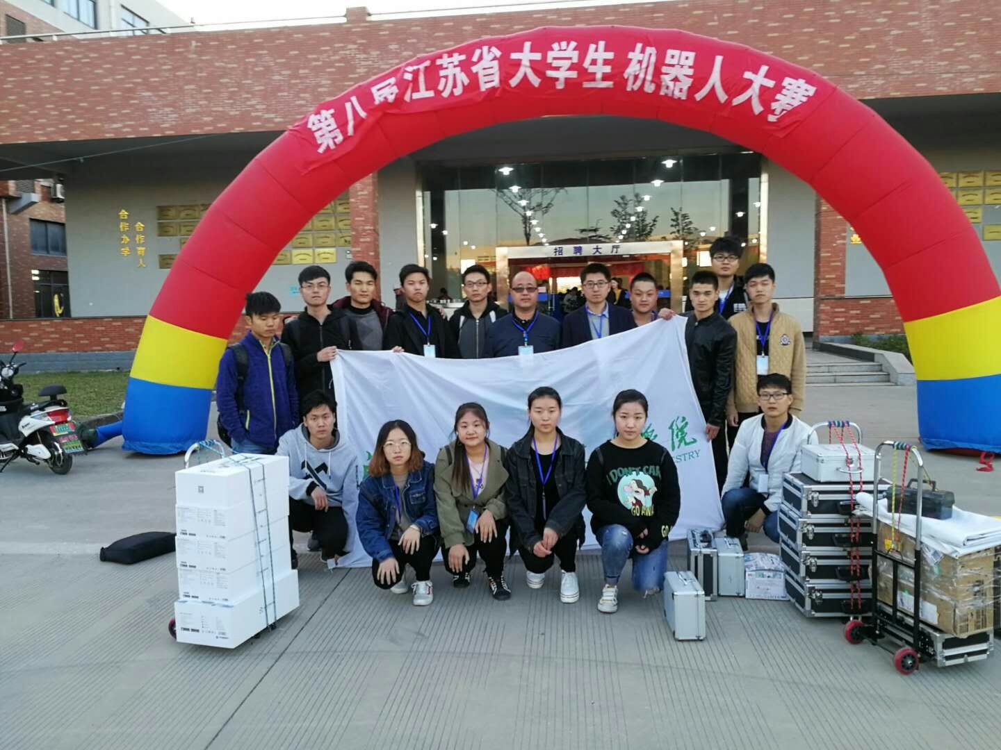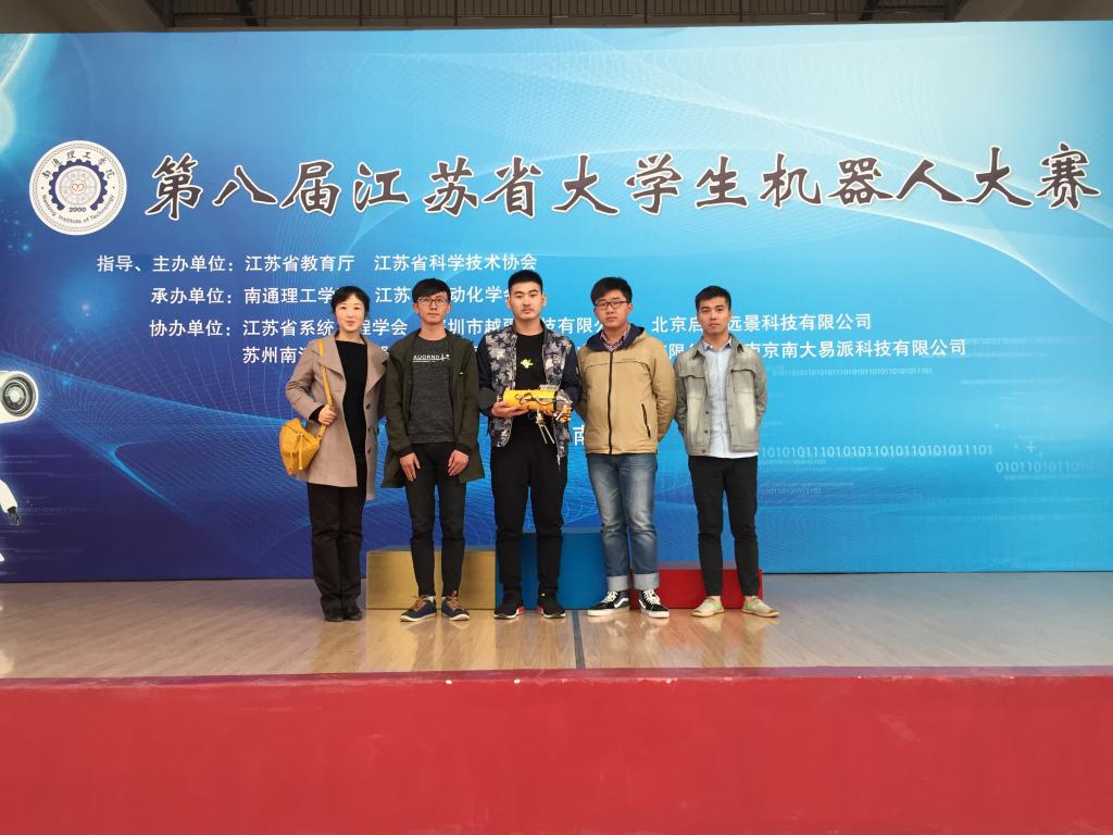 江苏省大学生机器人大赛自2004年创立,由江苏省教育厅、江苏省科协主办,是省内历史最久、影响最大的机器人赛事。设有工业机器人、交通物流机器人、体育机器人、文化休闲机器人等比赛项目。我校自2014年开始参赛,截止2017年,已获得五项一等奖,六项二等奖,九项三等奖的好成绩。
