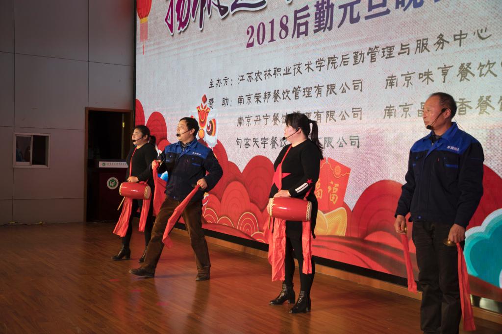 晚会开始,江德明主席向后勤全体员工致新年贺词,对全体员工的辛勤付出表示感谢。在宿舍管理部阿姨的优美舞蹈《张灯结彩》中演出拉开了序幕,物业管理部、师生食堂分别带来的舞蹈《欢聚一堂》和《红马鞍》展现了后勤阿姨们的青春活力;三句半《咱们后勤人》诙谐幽默,让大家深深感受到后勤人的积极和不易;独唱《最真的梦》、小合唱《感恩的心》唱出了后勤人追逐梦想的决心和服务全校师生的热心;东方舞《阿布》、越剧《追鱼》、舞韵瑜伽《春暖花开》、诗歌朗诵《色花堂美容师》展示了后勤人的多才多艺,展现了良好的后勤精神和团队风采。