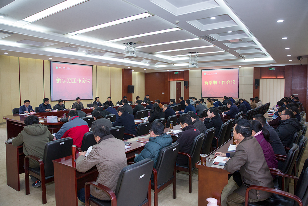 2018年度党政工作。全体院领导、中层干部参加会议。会议由党委书记俞卫东主持。