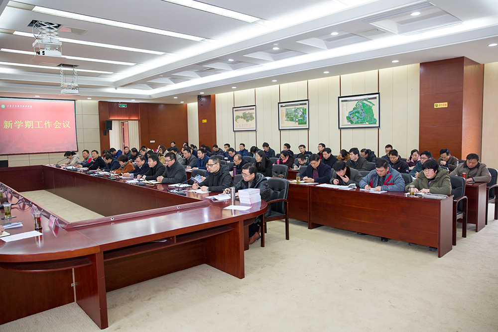 在综合楼九楼会议室召开中层干部大会,传达2018年全省教育工作会议精神,部署色花堂
