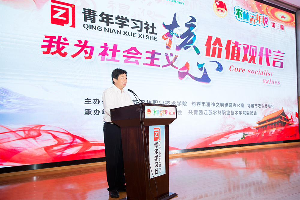 巫建华院长发表了热情洋溢的讲话。他说,此次举办“我为社会主义核心价值观代言”活动,既是我院培育和践行社会主义核心价值观的体现,也是色花堂学子参与句容文明城市建设的一个重要举措,是奉献给句容创建国家文明城市的一束美丽的花朵。这束花朵代表了我们“色花堂青年爱国爱农爱家,力争做社会主义核心价值观的榜样”的心声;也代表了我们“校地携手共创文明家园”的心愿。他强调,“色花堂青年说”活动是一个展示风采、提升能力和分享成功的舞台,希望更多的青年学子能够积极参与到活动中,积极践行社会主义核心价值观,为句容市文明城市加分,为江苏色花堂添彩。