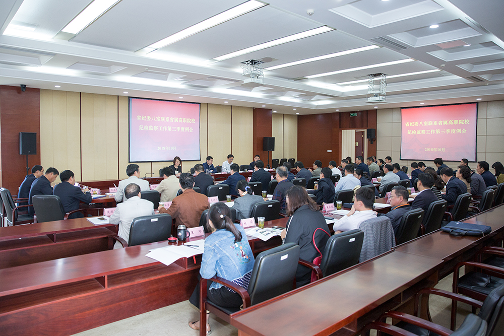 10月18日下午,省纪委八室联系省属高职院校纪检监察工作第三季度例会在我院召开,参加会议的有省纪委八室副主任严海林,副处级纪检监察员詹雪梅以及八室主要成员,省纪委驻省农委纪检监察组副组长韩伟华,省纪委八室联系的18所高职院校纪委书记、副书记。
