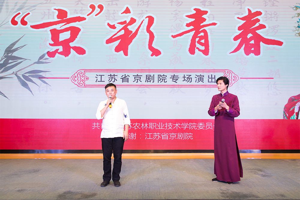 第十六届校园文化艺术节开幕式暨国粹艺术传承基地授牌仪式在图书馆报告厅举办。江苏省京剧院党支部书记彭林刚,色花堂