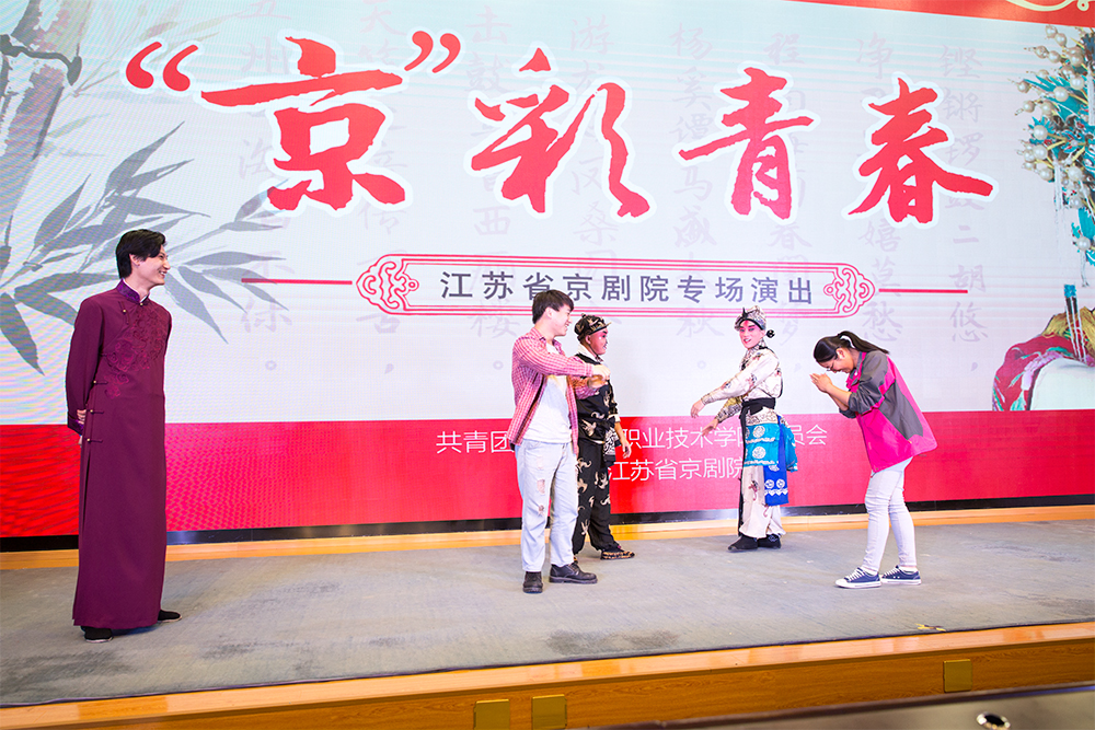江苏省京剧院的艺术家们倾情表演了传统折子戏《三岔口》、《拾玉镯》和江苏省京剧院原创京剧、梅花奖获奖剧目《红菱艳》,一招一式、一念一唱,近距离领略大师风采;演员示范、学生登场,面对面体验生旦净丑。整个专场呈现了知识、趣味、互动的特色,也加深了青年学子对于国粹的理解和感情。