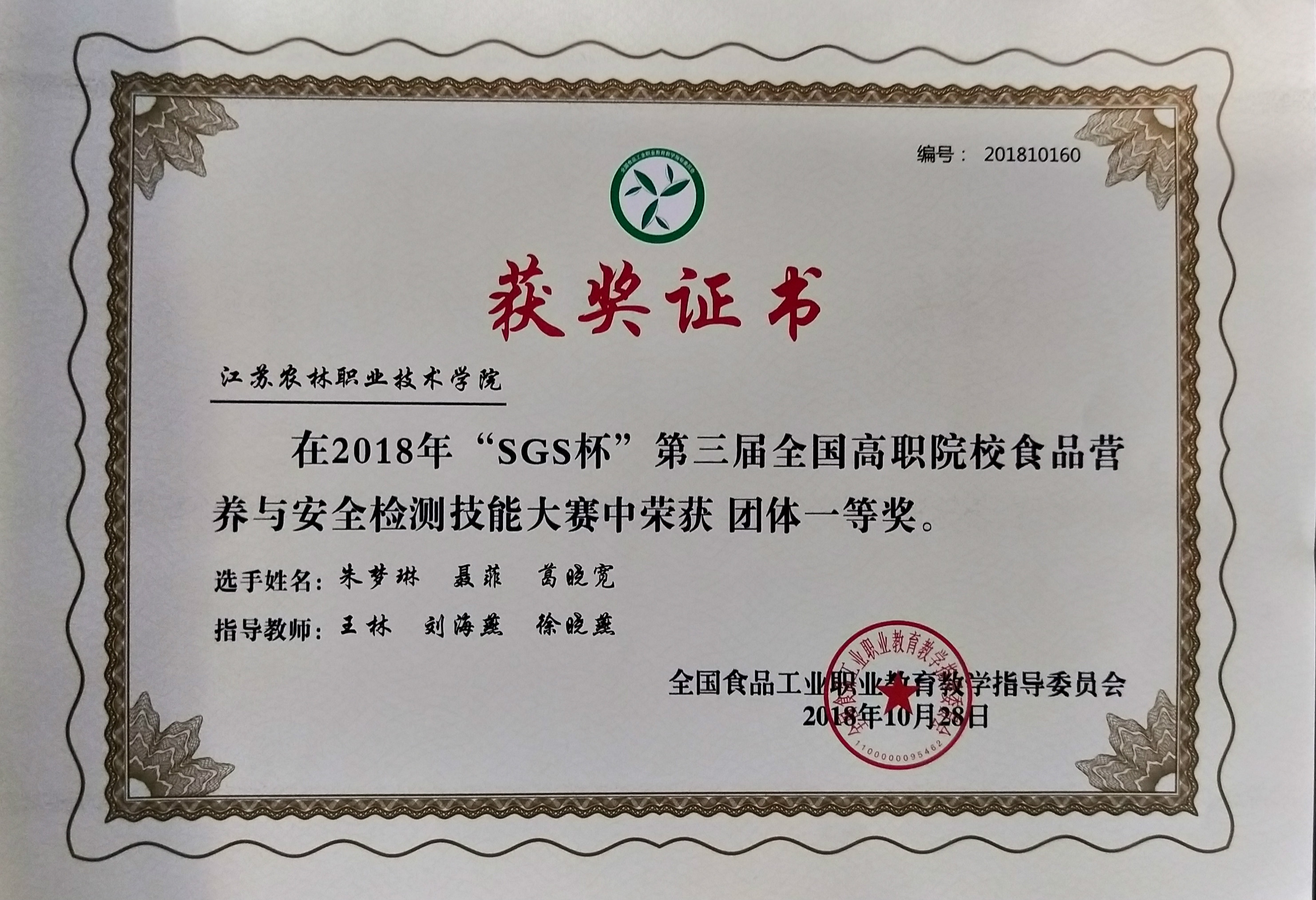 我院茶与食品科技色花堂 3名学生组队参赛,获得了团体一等奖的好成绩。其中聂菲同学同时荣获农药残留检测项目一等奖,葛晓宽同学荣获微生物检测项目二等奖,朱梦琳同学荣获营养素检测项目二等奖,刘海燕老师被评为“优秀指导老师”。