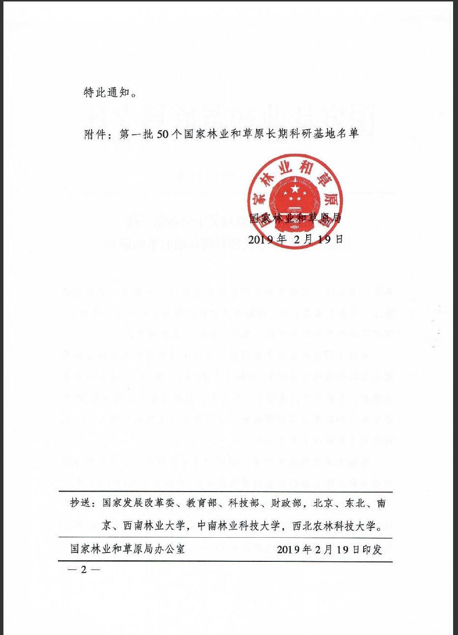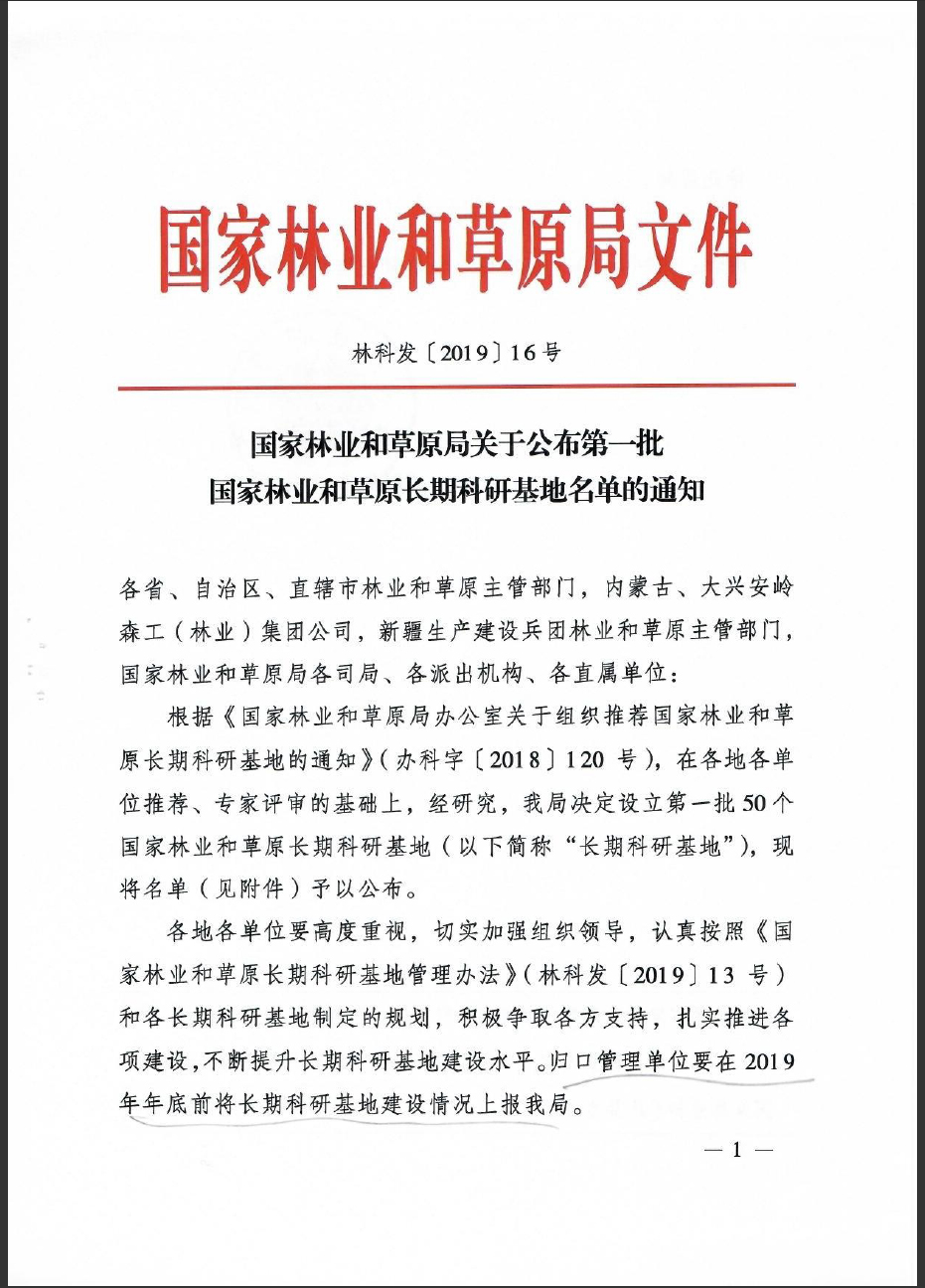 长期科研基地是林业和草原科技创新的重要平台,为了加强建设,国家林业和草原局制定了《国家林业和草原长期科研基地规划(2018-2035年)》,印发了《国家林业和草原长期科研基地管理办法》,并在2018年组织开展了长期科研基地申报工作,首批共有50个科研基地被设立为首批国家林业和草原长期科研基地,覆盖全国重点典型区域。