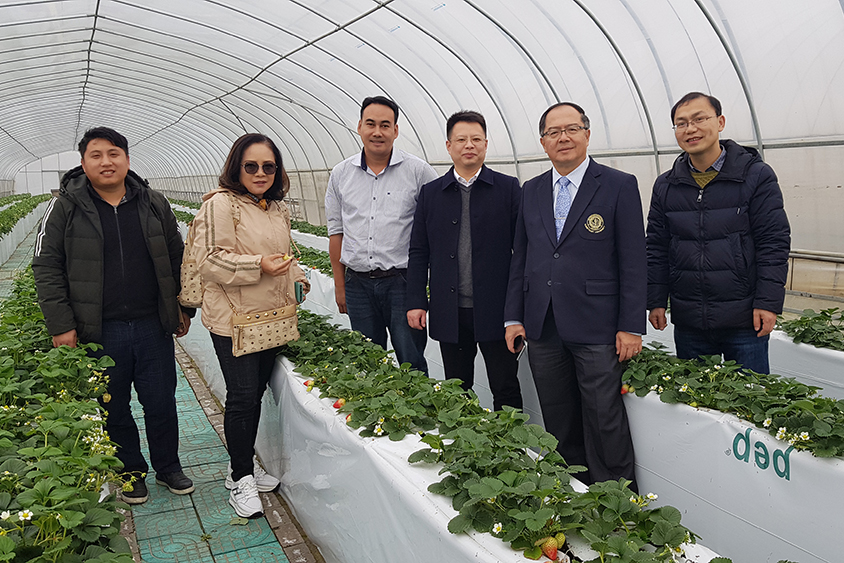 泰国农业大学纳龙柴教授一行还参观了江苏农博园和江苏茶博园两大实训基地,就草莓育种与繁殖进行深入的交流和讨论,对我院的设施设备、栽培技术、栽培成果给以充分肯定。