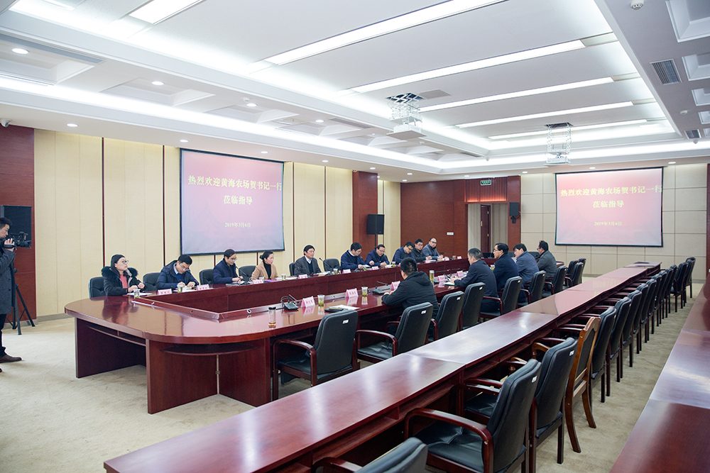会上,俞卫东书记对贺在锐书记一行的到来表示欢迎,并介绍了我校概况及农业装备应用技术专业人才培养、农机技能培训及社会化服务等方面的工作情况。贺在锐书记对我校在农机人才培养方面的办学工作给予肯定,并对江苏农垦集团公司及黄海农场分公司发展状况进行了详细介绍,何彦平副总经理对中德作物生产与农业技术示范园进行了详细介绍。