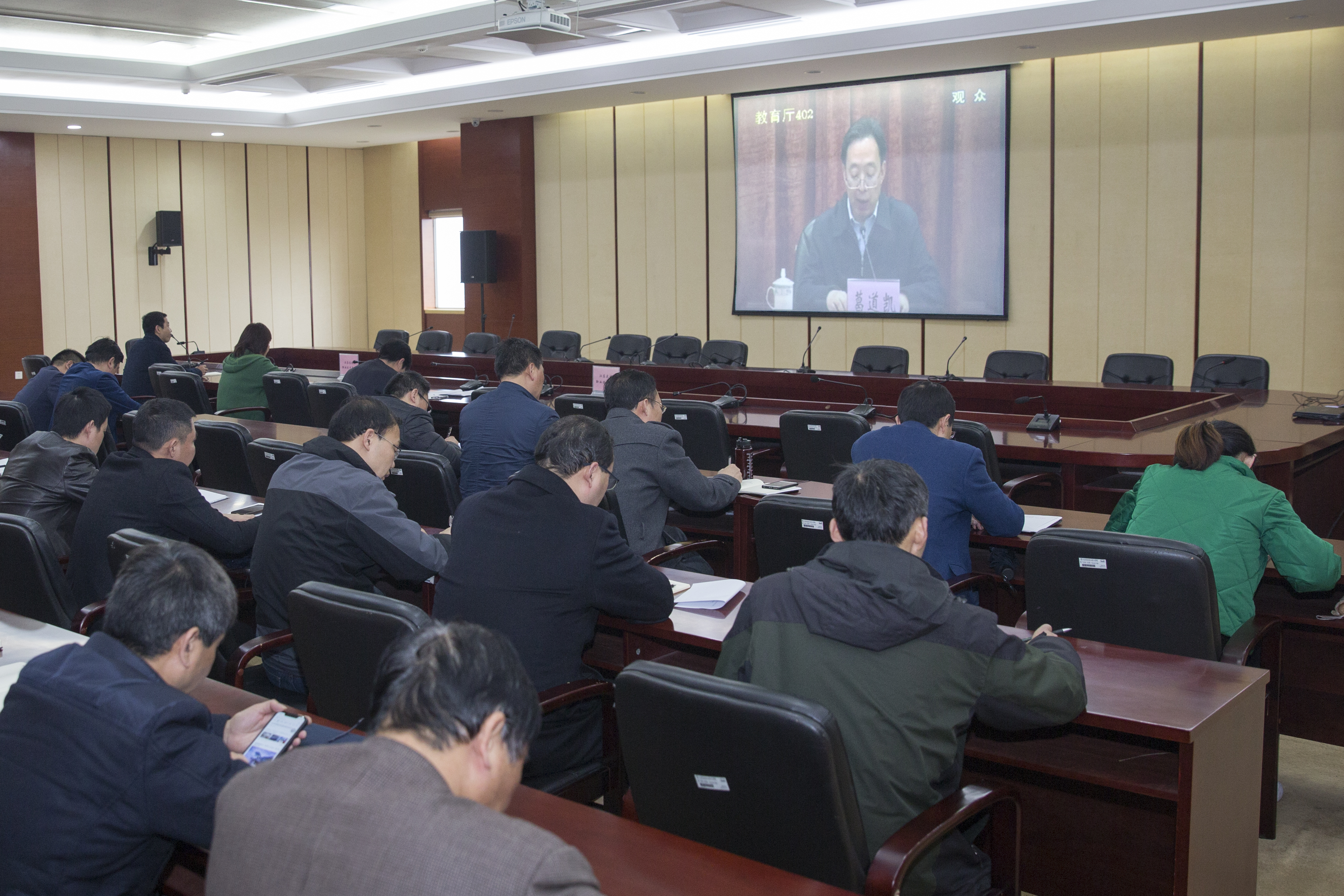 院长巫建华、副院长贾君和相关部门负责同志在综合楼九楼会议室共同收看了视频会议。