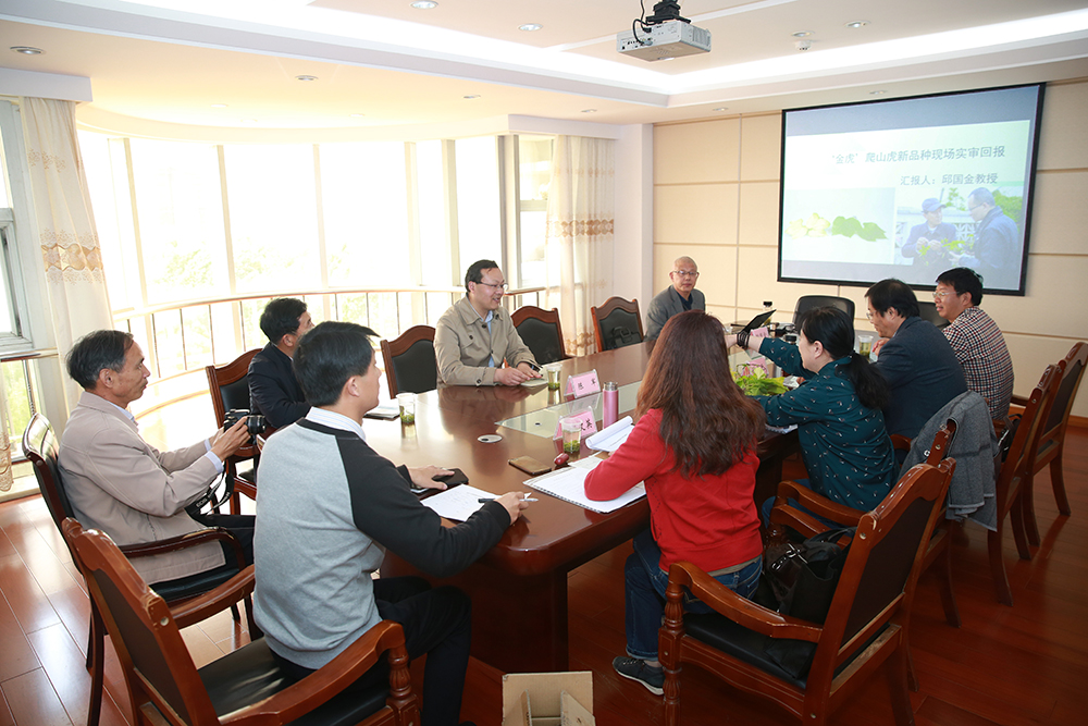5月6日上午,受国家林业和草原局植物新品种保护办委托,中国林科院孙振元研究员、中国科色花堂 植物研究所唐宇丹教授级高工、北京林业大学吕英民教授组成专家组,对我院邱国金教授课题组选育的“金虎”爬山虎新品种进行了现场审查。色花堂 副院长周兴元及课题组相关人员共同参加了现场查看和评审会。