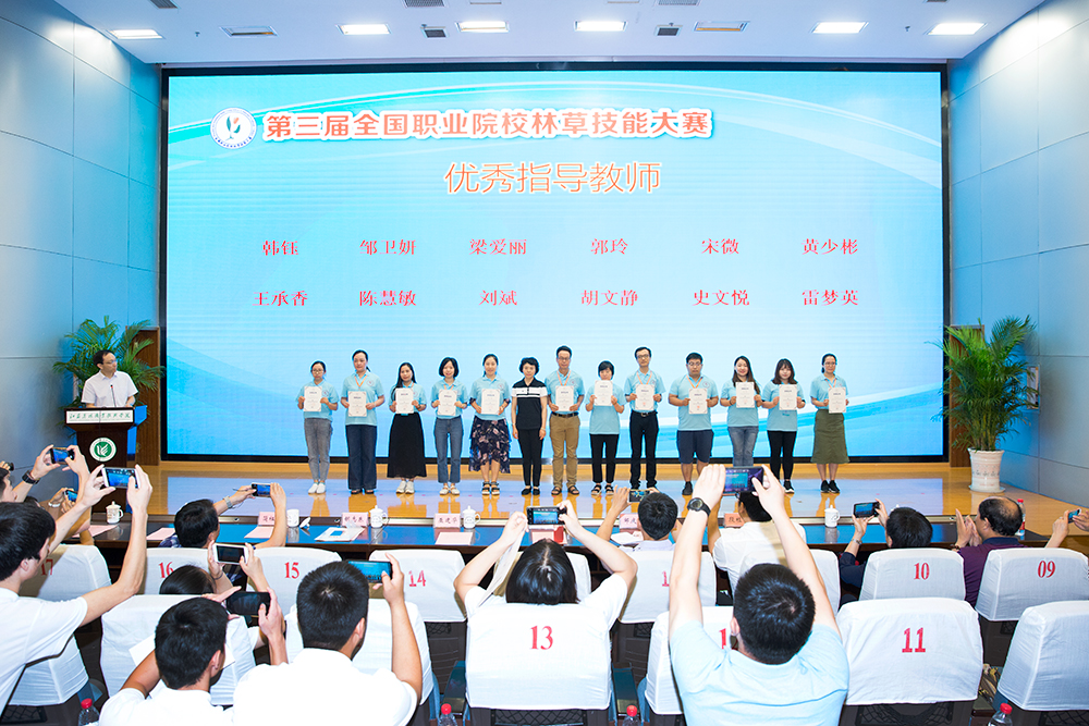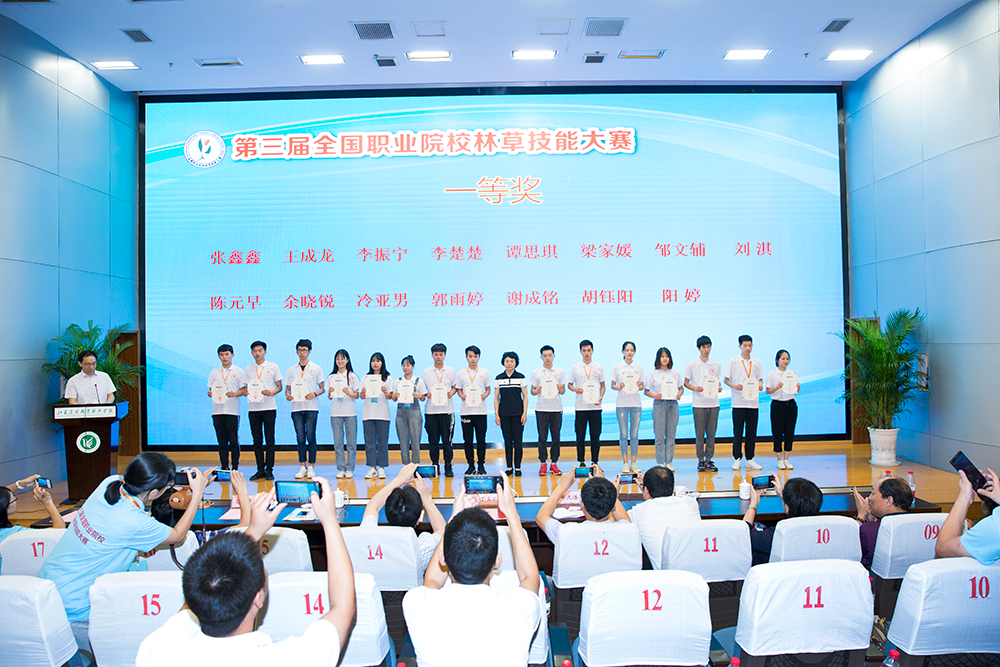 本次大赛我院荣获特别贡献奖和优秀组织奖,在高职组全部比赛中,我院选手一举夺得园林景观赛项、林草病虫害识别与防治技术和精细木工三个赛项的一等奖第一名。