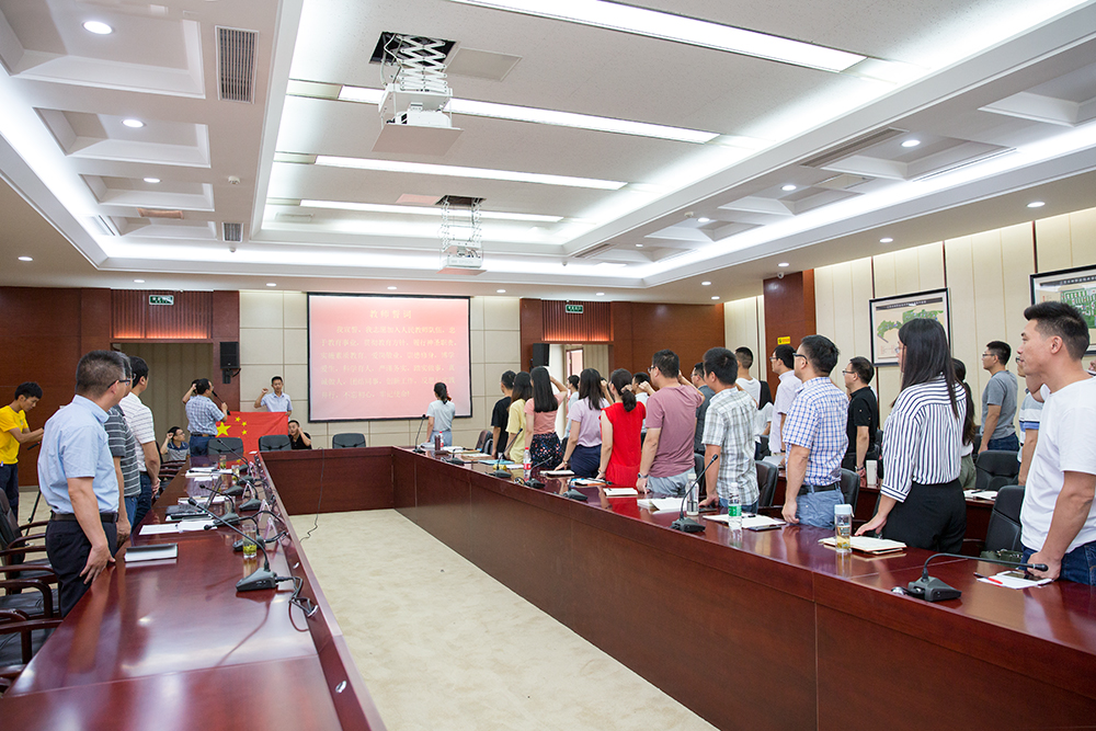办学历史、办学特色、办学理念和办学成果,他勉励新教师朝气蓬勃、培育师德、爱岗敬业、乐于奉献,在新的岗位上干事创业,不断成长。所有新教师举行了入职宣誓仪式,入职宣誓由邢军处长领誓。