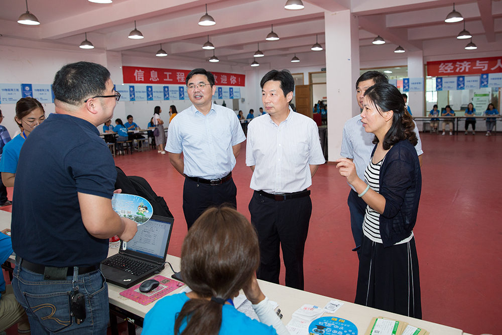 党委书记俞卫东,党委副书记、院长巫建华和党委委员、副院长曹仁勇亲临各迎新工作现场,了解新生报到工作,亲切慰问新生、家长及迎新工作人员。