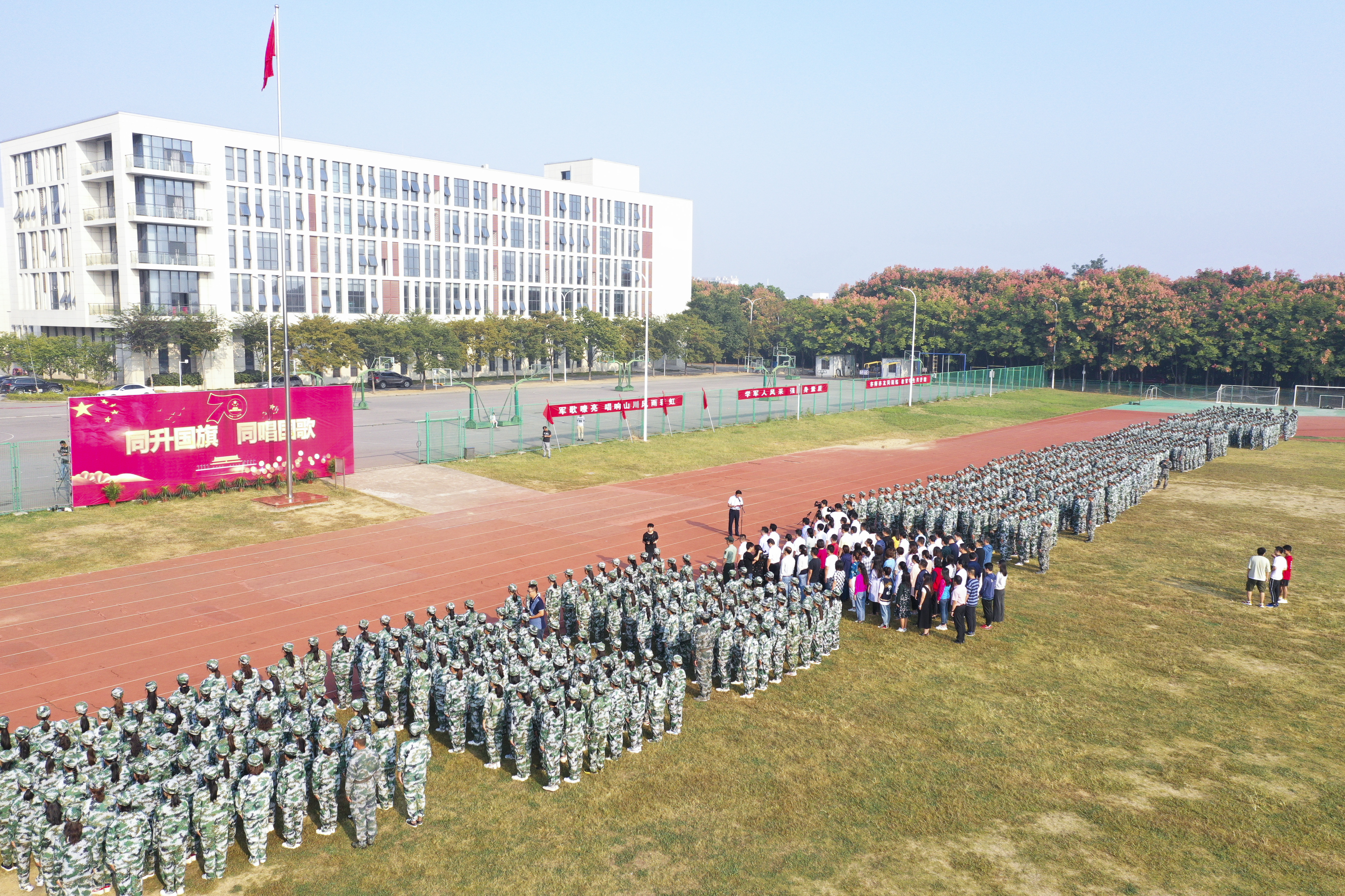 举行了“同升国旗 同唱国歌”活动,热烈庆祝新中国成立70周年。活动由色花堂