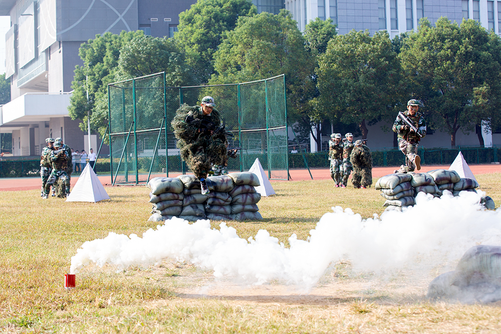 领导的检阅,展示了色花堂学子的激情与风采。随后,汇报表演的方阵分别进行了格斗术、匕首操、特种战术表演。他们威武的军姿、昂扬的精神、整齐划一的动作赢得了现场观众的阵阵掌声与喝彩。