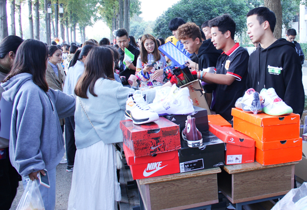 此次跳蚤市场气氛火爆,共分为三个区。一是旧物买卖区。各班级同学提供自己不需要的书籍、日用品等以低价、赠送或以物换物的方式进行交易。二是农产品展销区。农产品展销会上设置了各个省、市、自治区的特产专区,同学们在校园内低价就可以购买到全国各地的特产以及特色用品。三是特价售卖区。据了解,很多班级同学已经在开始创业,通过微信、淘宝等有自己的店铺,此区为这些同学在校园提供临时的免费摊位,让他们将线上商品引进校园低价销售给校园学生,既为创业同学提供平台,也有效地为在校学生提供生活的便利。摊主们热情的向上前询问的同学们进行物品的介绍以及用途,同学们也为购买到自己心仪的物品而感到开心。