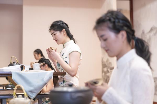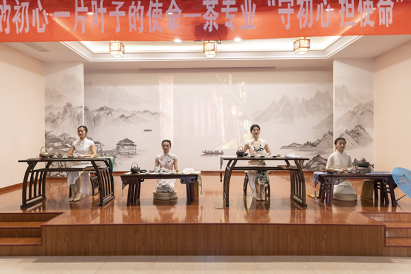 谈初心过程中,茶专业学生带来了以茶为主题的茶文化活动《初见茶》茶舞、茶诗朗诵《茶茗礼赞》以及《茶香四季》主题茶艺表演,以表达他们坚定选择茶的初心,负起青年茶人的时代使命,让青春在这里绽放。