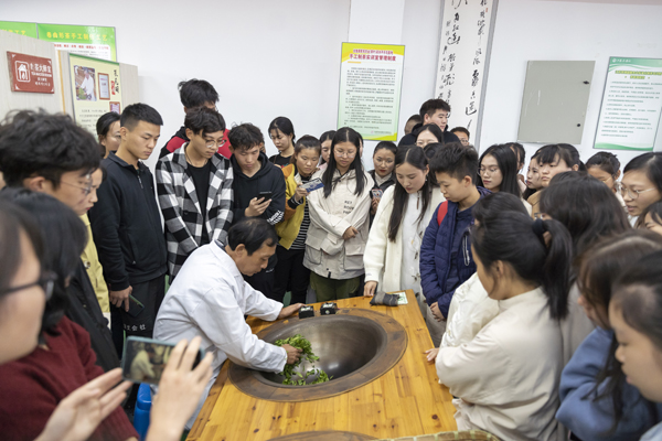 此次主题教育分两个篇章六个环节。初心篇,王润贤教授从选择茶专业、从事茶经历、坚守茶传播方面谈了他作为一个“老”茶人的初心,他生动形象的比喻了幼年时是枝头随风舞动的灵芽,青年时是被采摘杀青揉捻制作的毛茶,成年时成形态各异的成品茶,希望我们的青年学生如同这正在经受历练的毛茶一般,能经得起人生的各项考验。同时,他还讲述了作为一名有30多年党龄的老党员,是如何在自己的工作岗位上坚定信念、守住初心、勇担使命的。17茶艺与茶叶营销专业彭滟洁,作为一名“小”茶人,谈了她的《茶梦之旅》:曾带领班级学生走进社区,为老百姓普及关于健康饮茶的知识;曾组织志愿者来到希望小学,传播茶文化,教授茶礼仪,将茶传统文化发扬光大;曾带领一批爱茶之人走进贵州茶山,积极参与新时代“三农”工作,把爱国情、强国志、报国行自觉融入到新时代追梦征程中。最后,全体茶专业同学还领会了“匠人”的初心:曾荣获国家级“中茶杯”、省级“陆羽杯”特等奖的制茶师傅孔凡明现场为同学带来了手工制茶,并讲述了他从事制茶工作三十余年的初心。