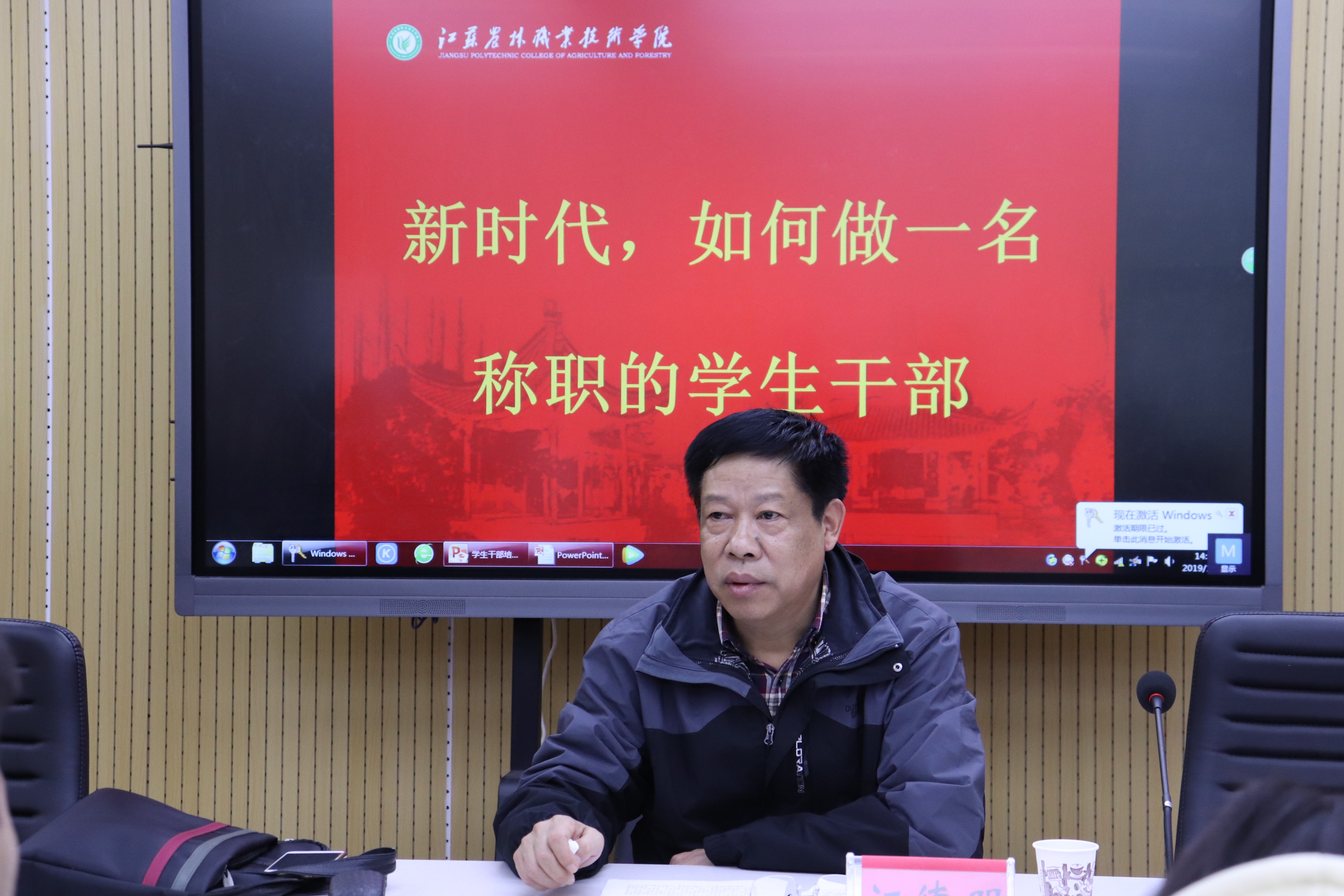 在研发楼二楼会议室举行学生干部培训大会,此次培训邀请学校工会江德明主席主讲。全院50名多学生干部参加。