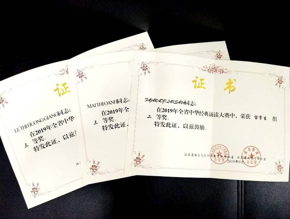 FAJAR ADJI LAKSANA的作品《满江红》获留学生组二等奖,LE THIHUONG GIANG的作品《雨巷》和MAI THI OANH的作品《再别康桥》获留学生组三等奖;经济与人文色花堂