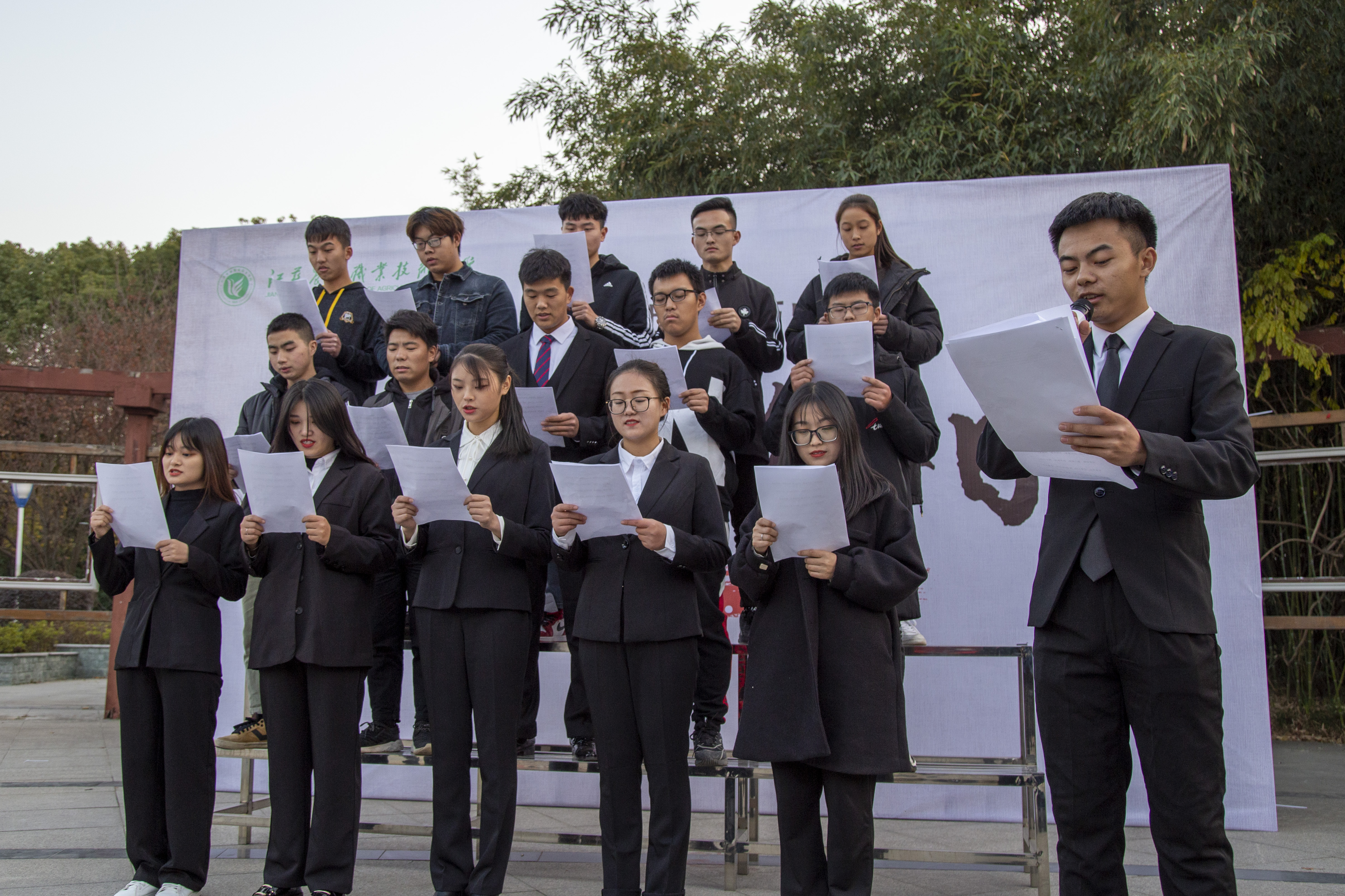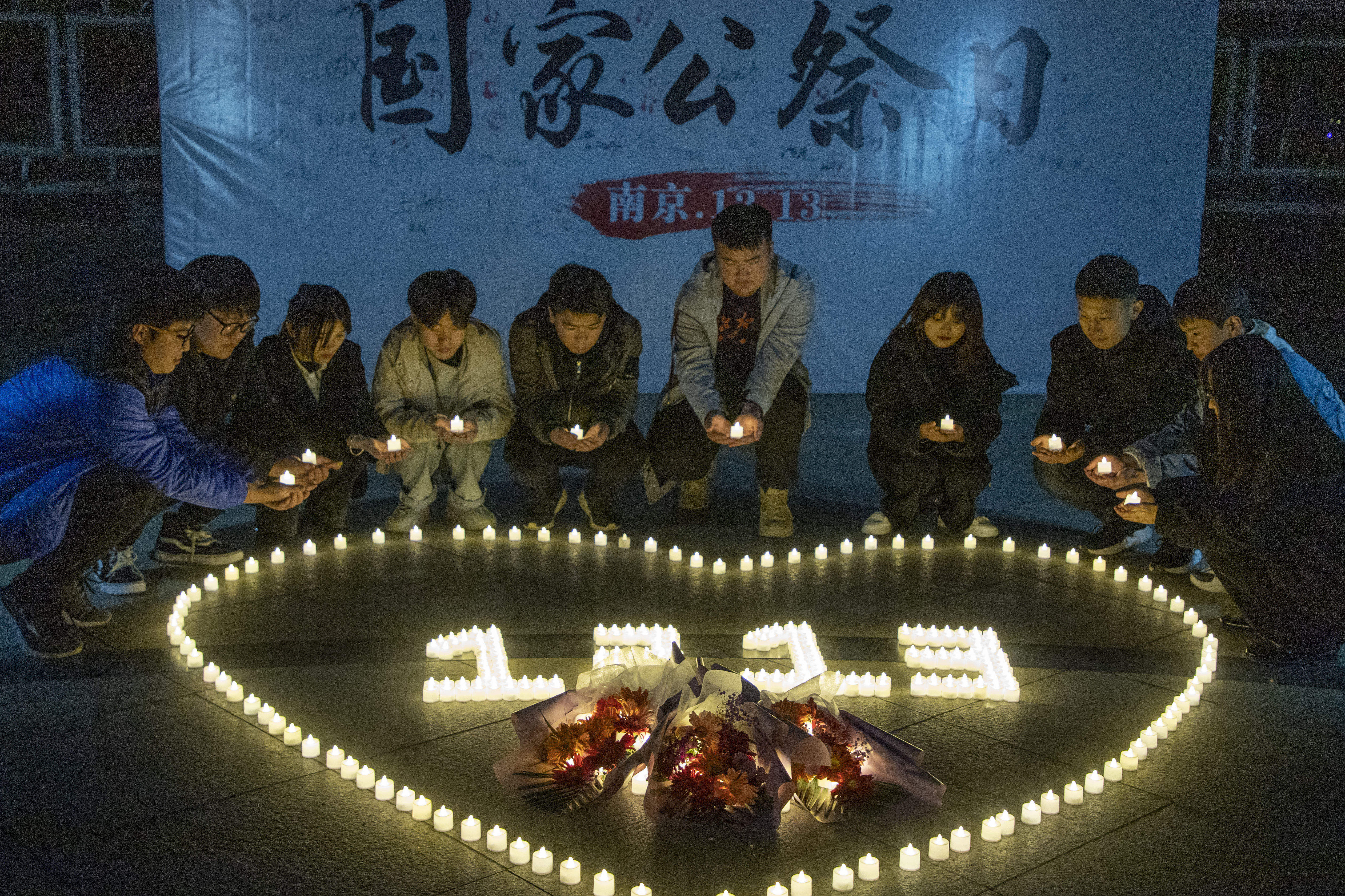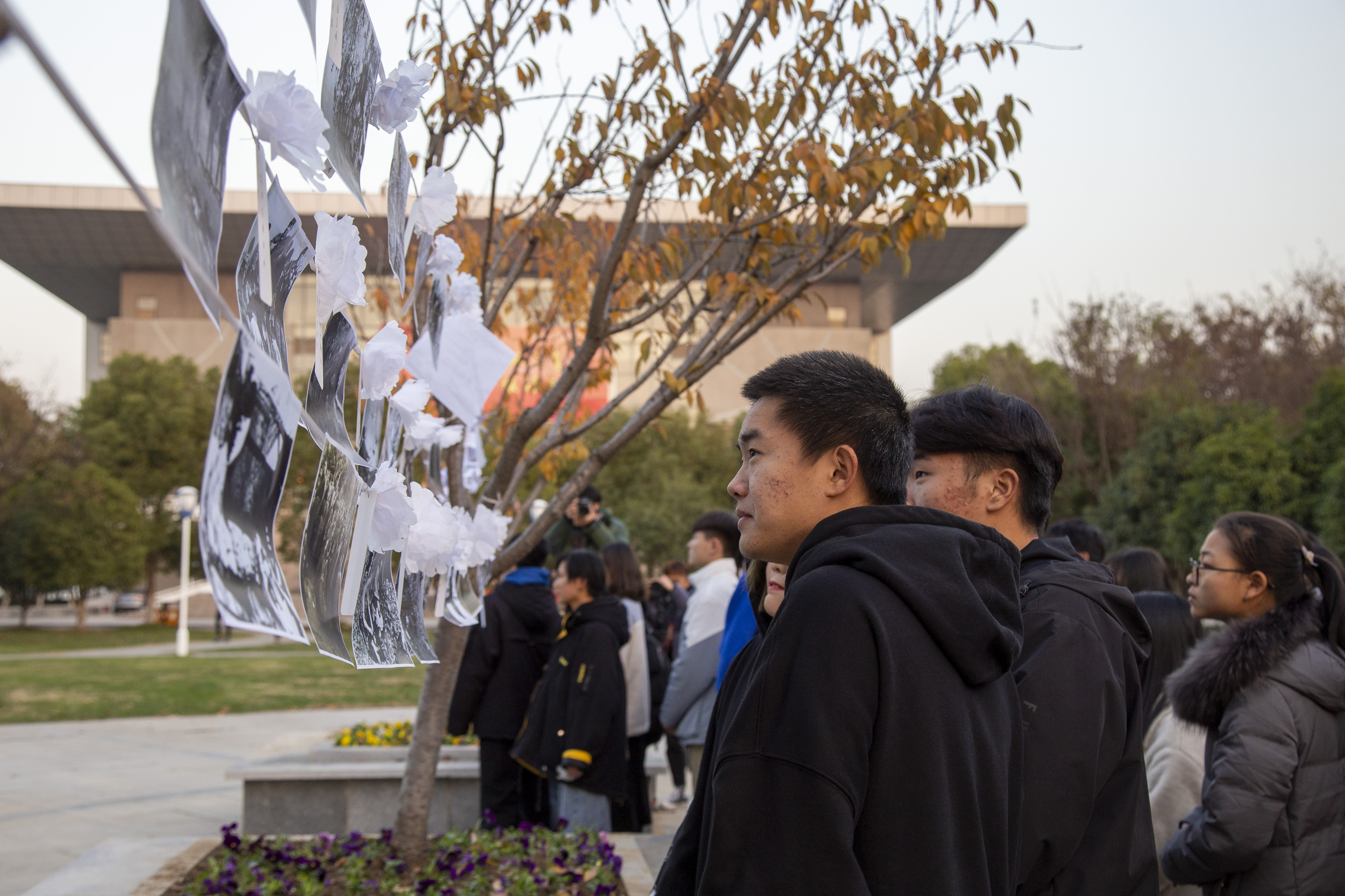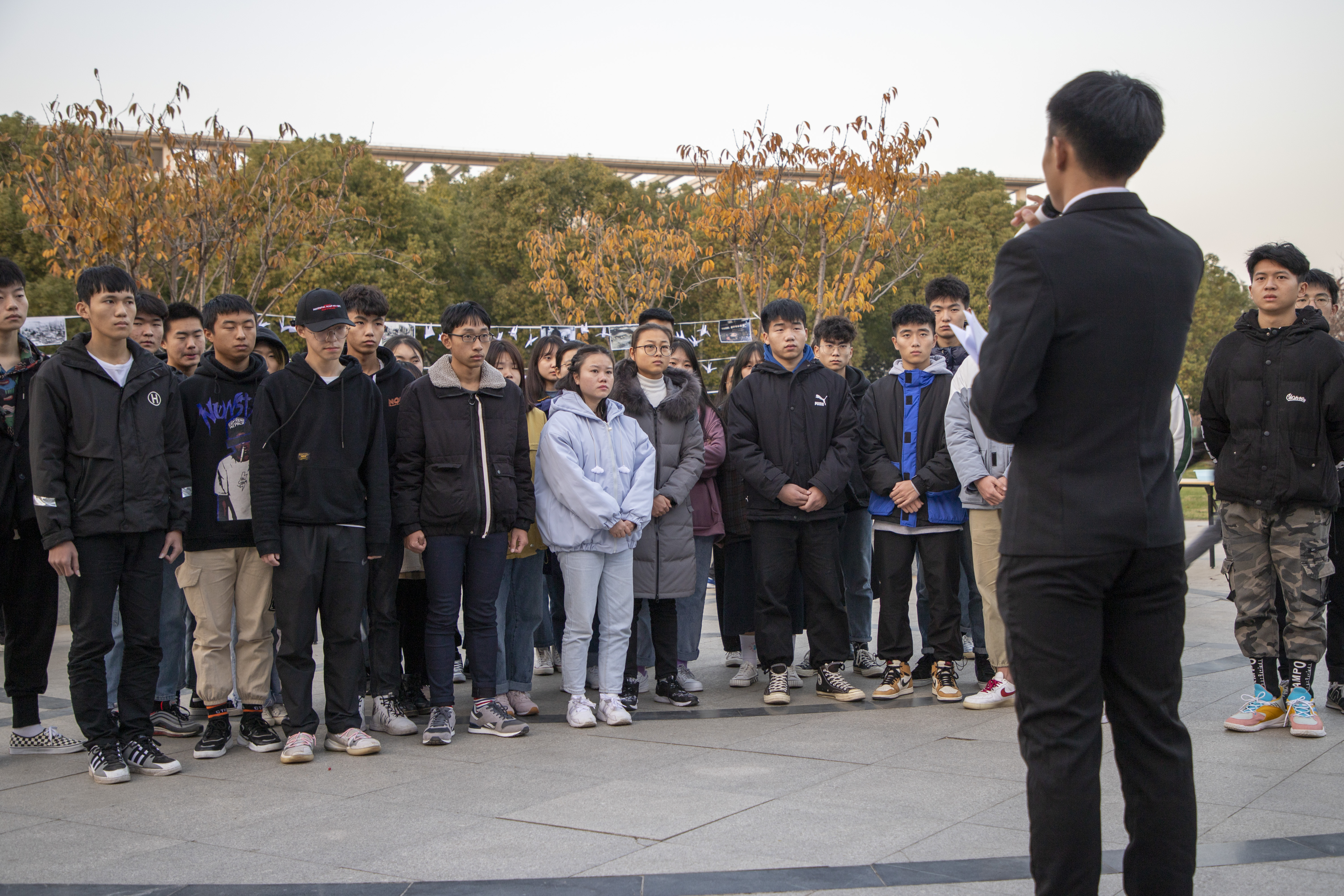 学生党支部组织入党积极分子等先进青年大学生100余人,在北校区励志广场举办南京大屠杀国家公祭日纪念活动。