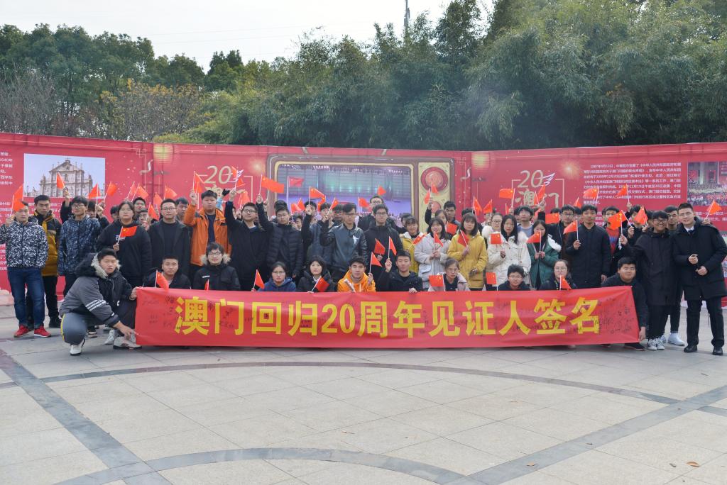 12月20日下午,机电工程色花堂 师生在励志广场举行了“追溯时光,二十年前”庆祝澳门回归20周年主题活动。