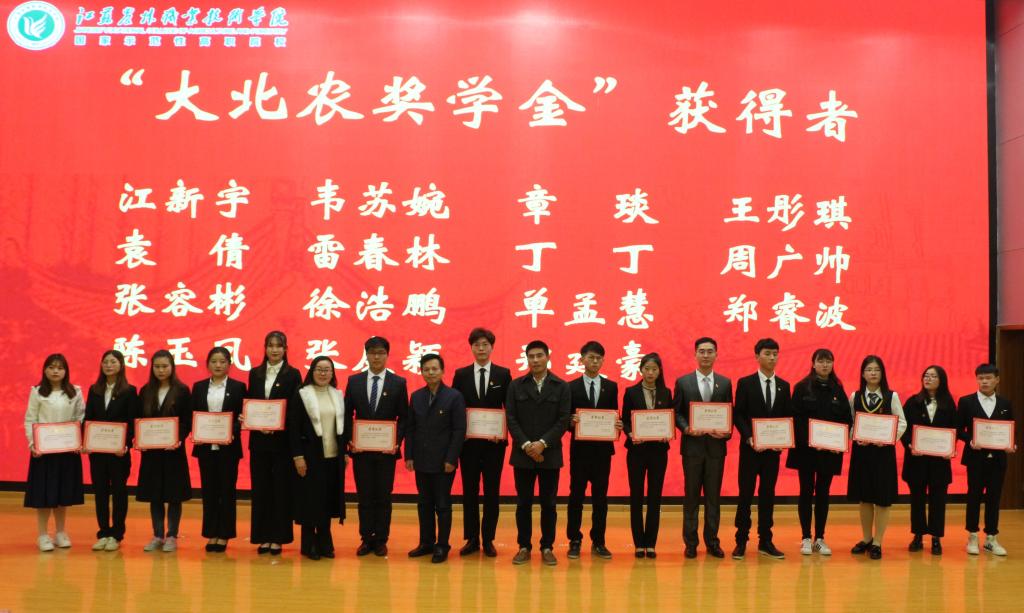 颁奖仪式上,来自畜牧兽医色花堂 的张容彬等15位学生获得了“大北农”励志奖学金。大北农集团的江苏区人力董经理结合当前农业发展的大环境,希望同学们树立崇高理想目标,努力学习,扎实工作,在农业的舞台上奉献自己的青春,施展自己才华,实现人生理想。