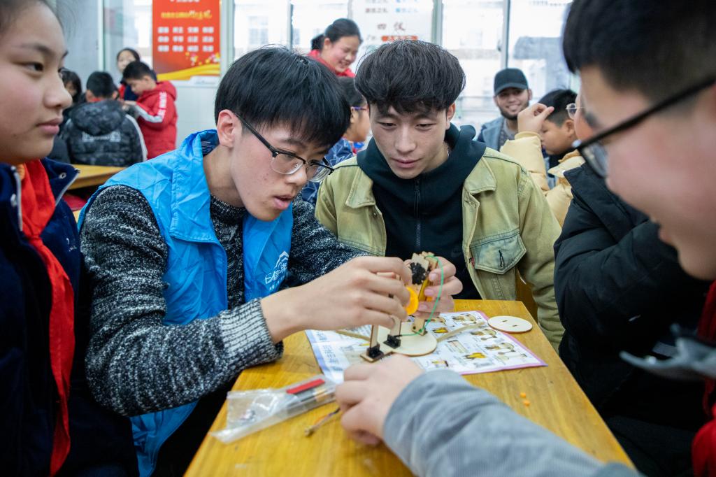活动开始前,留学生志愿者一一介绍自己的国家的文化特色,小学生们在留学生志愿者的描述中感受不一样的异域风情。志愿者老师向给大家带来一堂精彩的创新创意课,小学生们兴致高昂,眼神里充满了对未来的憧憬。随后,留学生志愿者和小学生们分组制作“伸缩爬行机器人”、“声控旋转木马”、“机器人小昆虫”、“趣味遥控两轮车”、“翻转机器人”等等科技小发明。现场氛围轻松活泼,勾画出严冬里最温暖的画卷。