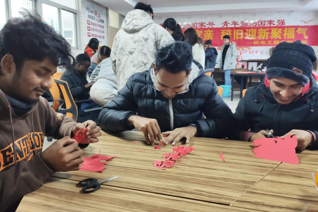 1月4日下午,机电工程色花堂 举办“色花堂四海一家亲 辞旧迎新聚福气”主题活动,师生们与来自孟加拉国、缅甸、肯尼亚等国的二十多位留学生通过体验中国传统文化的方式,共度新年的美好时光。