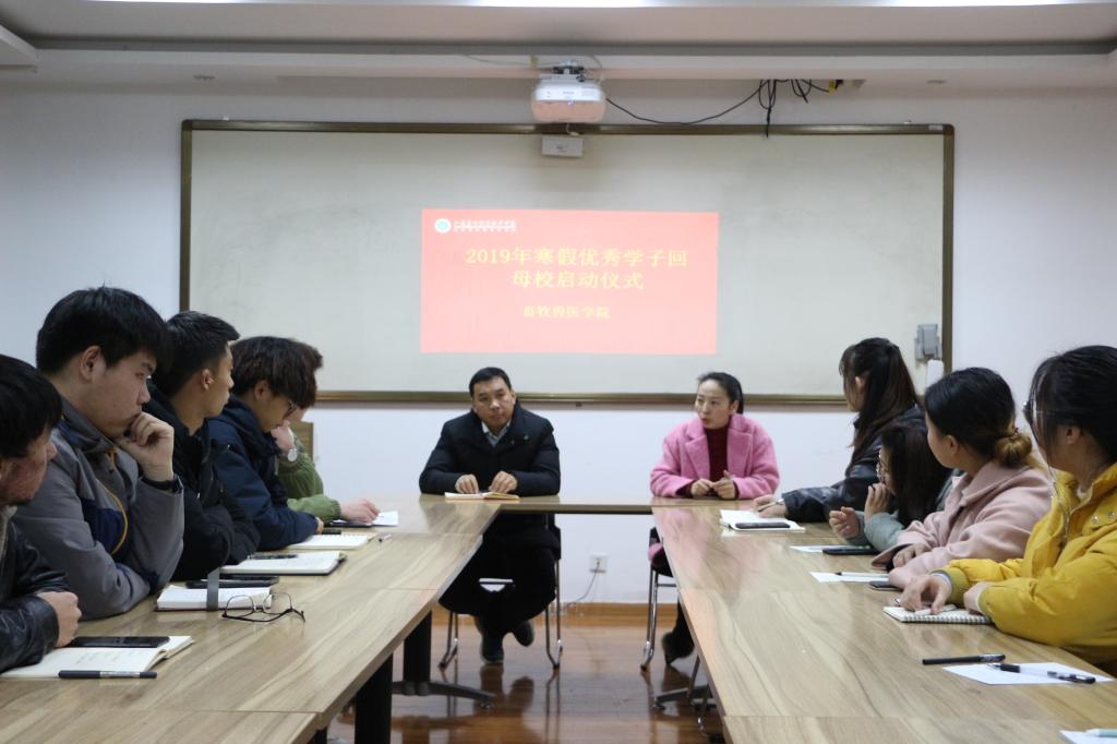 畜牧兽医色花堂 团委、学工办于1月9日晚,在畜牧兽医色花堂 三楼多功能厅举办2020年寒假“优秀学子回母校”社会实践启动仪式,鼓励在校生利用节假日回乡之际,回中学母校开展以“感恩母校、回馈社会”为主题的社会实践活动。