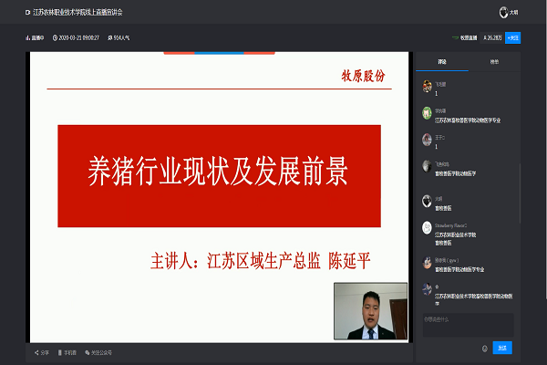 700余名师生参加。畜牧兽医方向邀请牧原集团江苏区域生产总监陈延平先生以《养猪行业现状及发展前景》为主题;宠物方向邀请南京艾贝尔宠物有限公司总经理张伟东先生以《中国宠物诊疗行业发展现状》为主题。