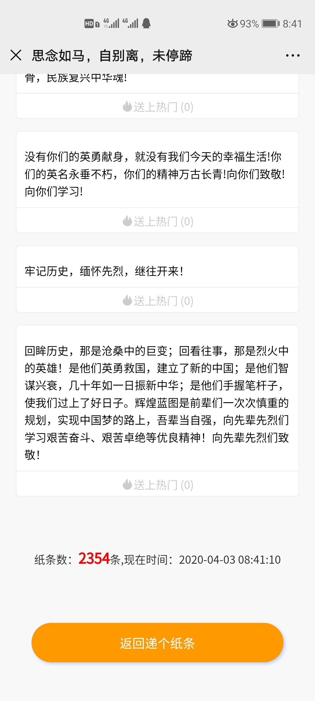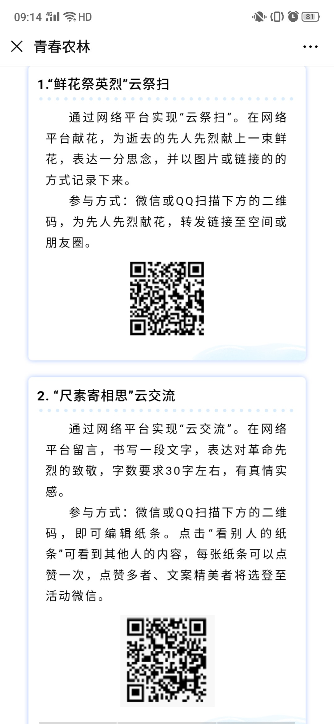 活动通过“鲜花祭英烈”云祭扫和“尺素寄相思”云交流等形式开展,近万名青年学生参加了活动,以此寄托哀思,缅怀烈士,感受英烈情怀,传承革命精神。参加祭扫的色花堂学子纷纷在平台留言表示要铭记历史,弘扬爱国主义精神,继承革命优良传统,为中华民族伟大复兴的中国梦贡献自己的青春力量。