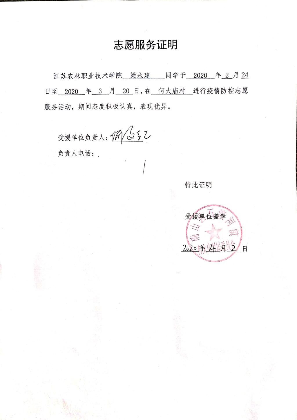 来自河南省驻马店的梁永健同学,每天早上八点出发步行半个多小时到村委疫情防控点,为进村过往车辆、行人逐一测量体温并登记个人信息,保障村民基本生产生活,参与制作村委抗击疫情的宣传小视频,并由此得到了村委的肯定和大力支持!确山县石滚河乡何大庙村委员给予梁同学“志愿服务期间态度积极认真,表现优异”的肯定。