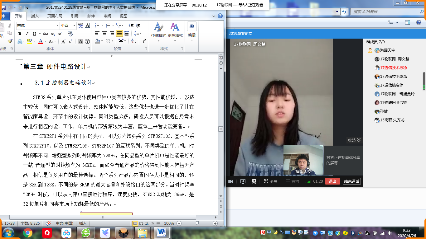同学按照要求,在QQ群、腾讯会议等平台中以视频会议的形式参加毕业设计(论文)线上答辩,论文指导老师从选题背景、理论框架、论文排版、研究问题的方法和技术性、论文创新性、研究结果分析等6个方面给出论文的指导意见,得出学生论文的最终网上预答辩成绩。本次毕业设计(论文)线上预答辩工作精心组织,严格把关,整个过程紧凑有序。经全体师生的共同努力,信息工程色花堂