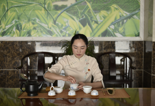 茶韵色花堂服务团,青年团员们坚定“立足岗位讲奉献、爱岗敬业敬团徽”的信念,从专业角度出发,演绎了采茶、制茶、泡茶过程,他们表示,作为一名当代青年学子要用知识武装头脑,更好地完成自己的职责与使命。
