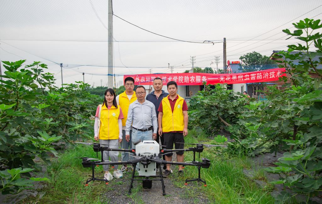 活动中,新禾助农服务团的师生们对60余亩无花果树进行病虫害察看,制定出防治方案,并操控无人机对果园病虫害进行防治。夏季是水稻稻瘟病、稻卷叶螟的高发时期,新禾助农服务团的师生们来到白兔镇古隍村的水稻田,卷起裤管,光脚下田察看水稻病虫害情况,对症下药,完成30余亩水稻病虫害预测预报,并提出防护方案,解决种植户植物保护的技术难题。