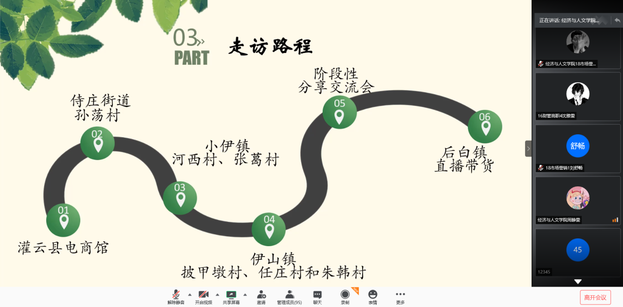 “乡里巴人”暑期社会实践团通过腾讯会议以线上直播的形式举办了2020年暑期社会实践线上分享介绍活动,共100多名学生参与了团队分享交流活动。
