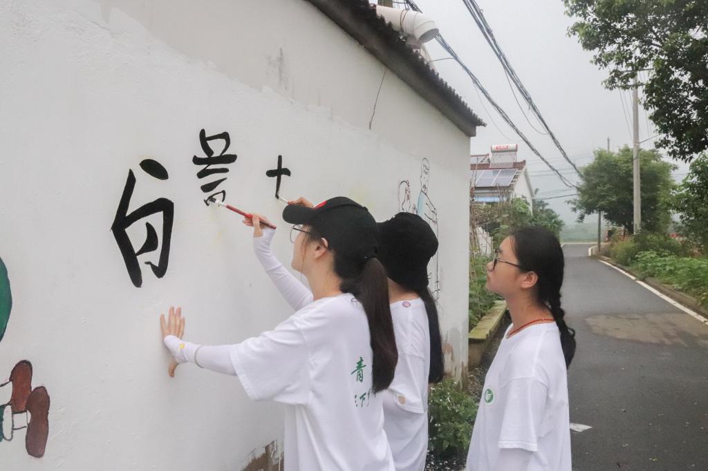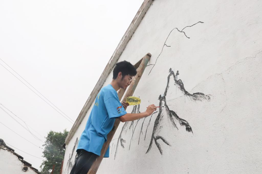 此次暑期社会实践以“用青春画笔,绘美丽乡村”为主题,充分发挥学生专业特长,极大提升他们的实践动手能力。师生们对句容市边城镇佴池村、青山村进行充分的前期调研,运用山水、彩绘、书法等艺术手法,绘制乡风明德文化墙,结合两个自然村丰富的物产和传统文化进行墙绘设计,将社会主义核心价值观、礼仪廉孝、自然生态、村庄文化、地方特色、文明标语等内容生动形象地呈现,通过简洁明了的艺术形式让人文艺术与自然相融合。
