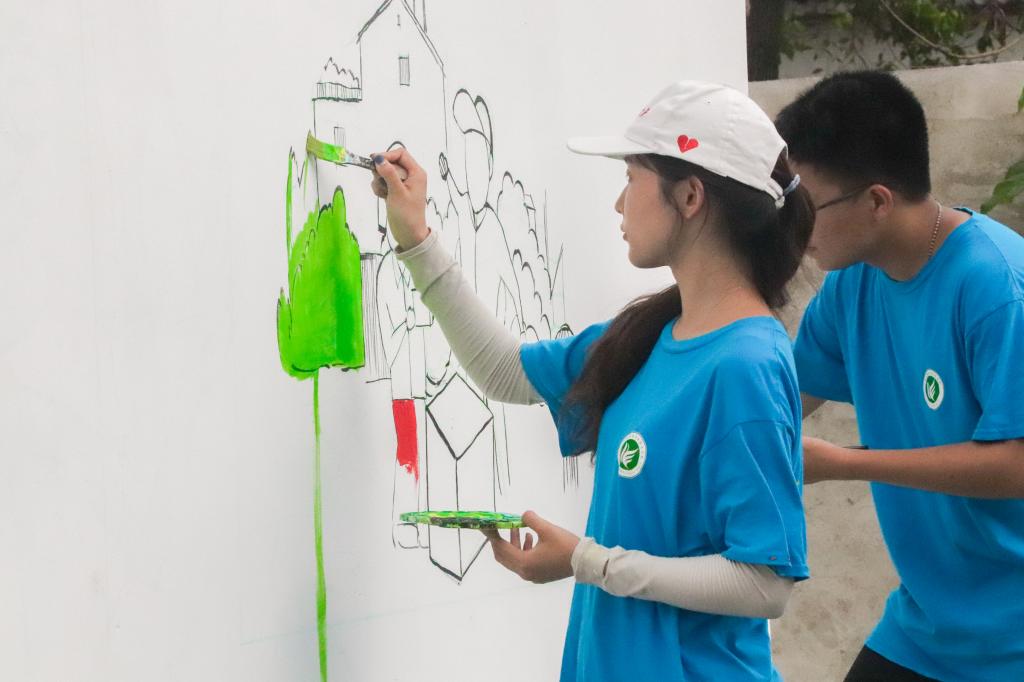 在十天的实践中,师生们克服炎热高温,完成大小墙绘共14面,得到了村民们的高度赞扬和认可。因成效卓越,风景园林色花堂