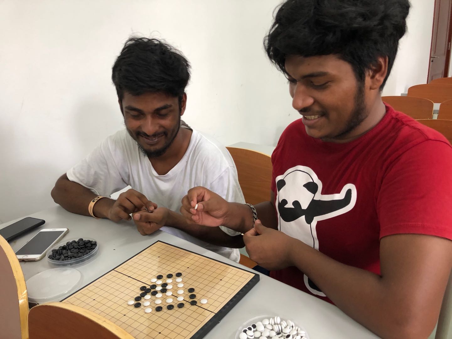 赛前,指导老师认真讲解五子棋的规则,留学生们在老师的指导下很快掌握了下五子棋的技巧,并且体验到了五子棋的乐趣。比赛开始后,大家都铆足了劲,招招逼人。比赛结束后,大家还不忘交流比赛心得,取长补短。最后,来自老挝的留学生帕齐用高超的棋艺拔得头筹,孟加拉留学生孟莱和老挝留学生温林分别获得亚军和季军。