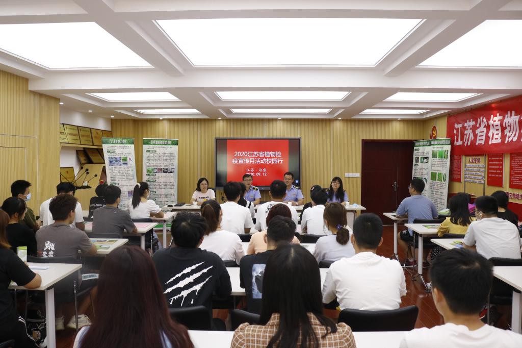 于9月12日在研发楼二楼会议室举办植物检疫宣传校园行活动,特邀江苏省植保植检站植检科科长龚伟荣、镇江市植保植检站站长何东兵、农学园艺色花堂